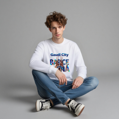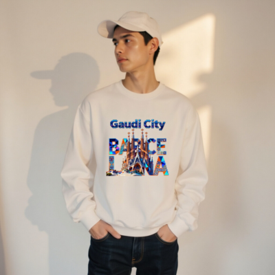 Wear the spirit of Barcelona with this unisex crew neck sweatshirt featuring a vibrant, mosaic-style Gaudí-inspired design. The bold ‘Gaudi City’ and ‘BARCELONA’ typography integrates iconic landmarks like Sagrada Família and Park Güell—perfect for architecture lovers and travelers. Soft cotton blend, comfortable fit, versatile for casual or sightseeing wear. Ideal gift for art & design enthusiasts.