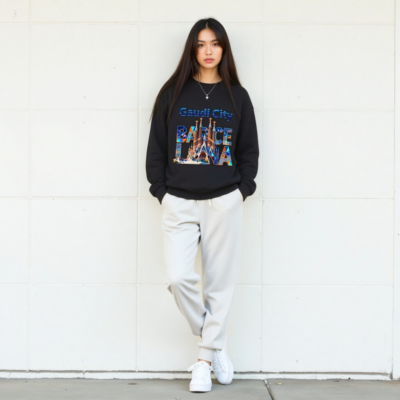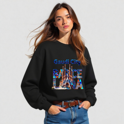 Showcase Barcelona’s iconic Gaudí architecture with this unisex crew neck sweatshirt. Featuring a vibrant, mosaic-style design of the Sagrada Família and Park Güell, the graphic blends bold colors and architectural details. Made for comfort and everyday wear, it’s perfect for travelers, art lovers, and fans of modernist design. Soft cotton blend, relaxed fit, machine washable.