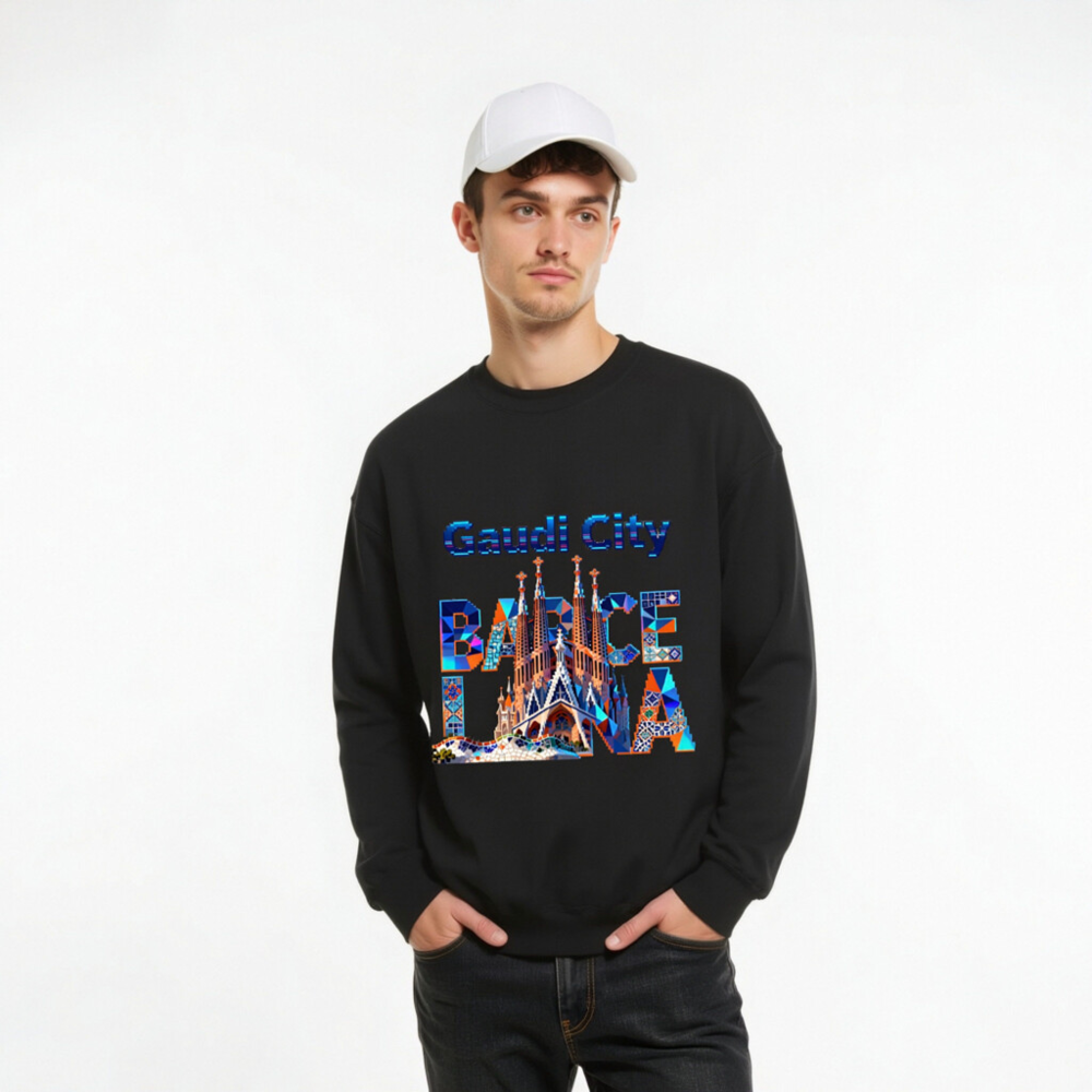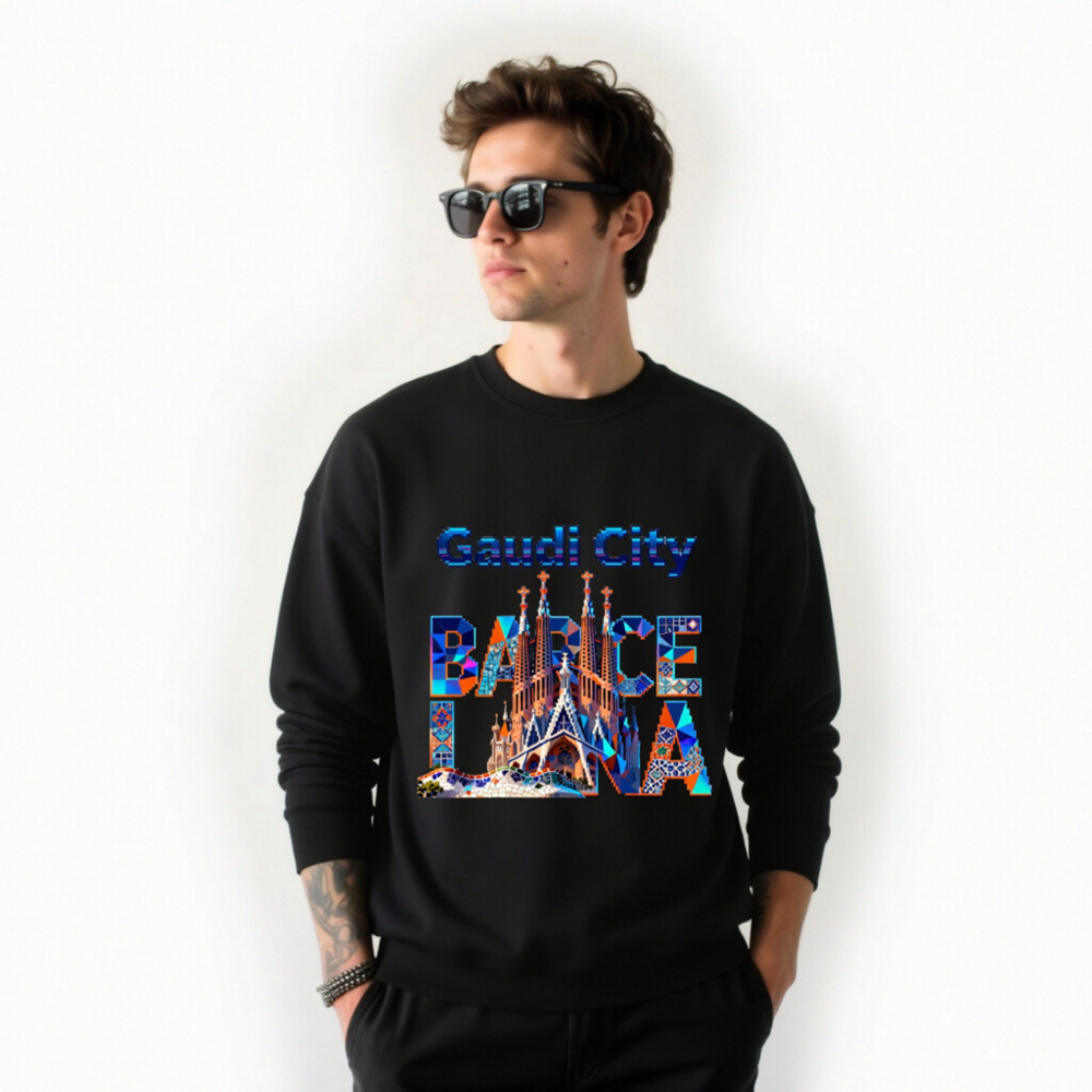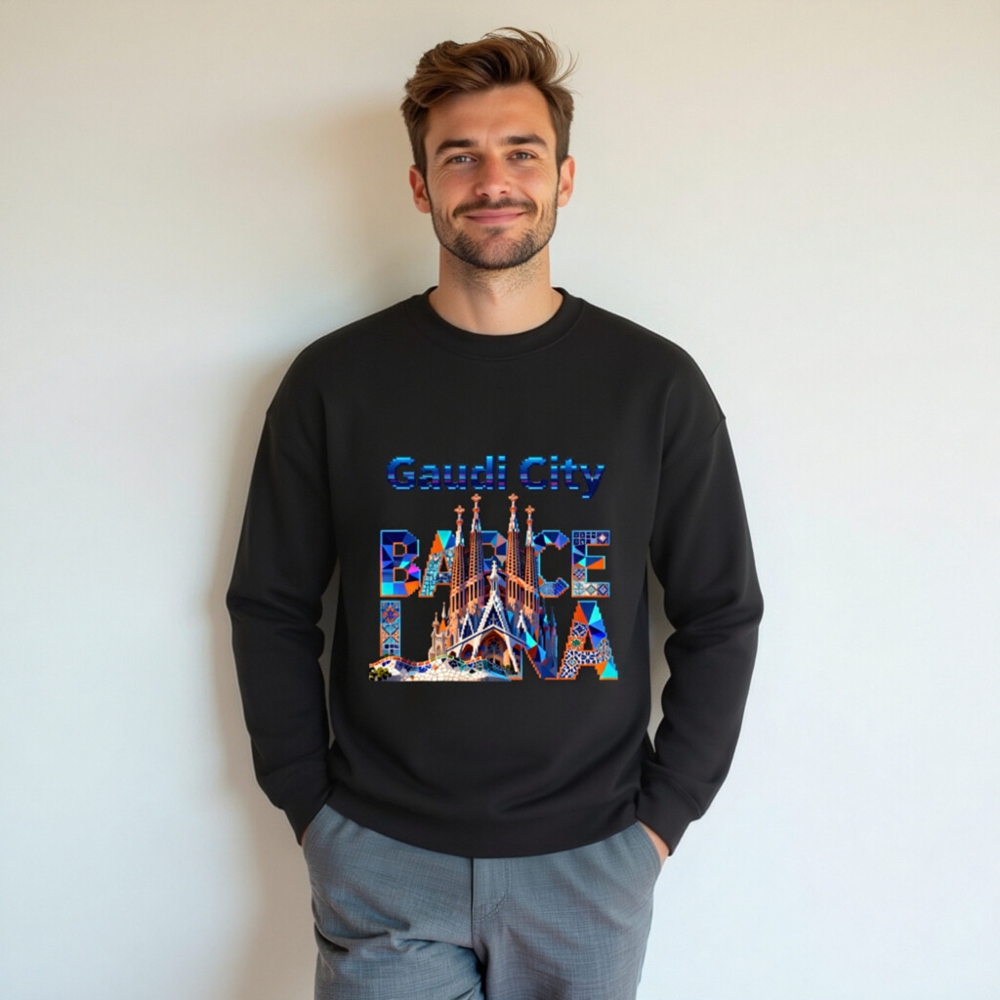 Showcase Barcelona’s iconic Gaudí architecture with this unisex crew neck sweatshirt. Featuring a vibrant, mosaic-style design of the Sagrada Família and Park Güell, the graphic blends bold colors and architectural details. Made for comfort and everyday wear, it’s perfect for travelers, art lovers, and fans of modernist design. Soft cotton blend, relaxed fit, machine washable.