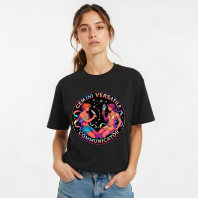 Celebrate Gemini’s dual nature with this vibrant unisex staple t-shirt featuring the iconic twin figures, constellation, and symbolic feather/mirror—embodying versatility and communication. Perfect for astrology lovers and zodiac enthusiasts. Premium soft cotton blend, classic fit, designed for everyday wear. Ideal gift for Gemini-born or cosmic spirit seekers.