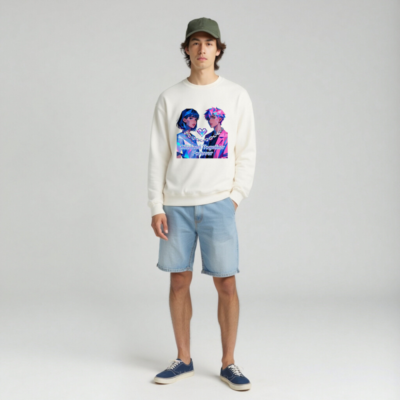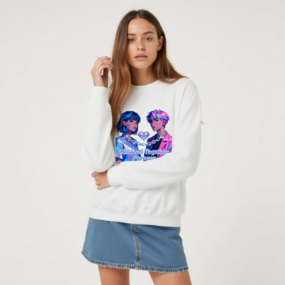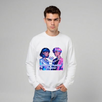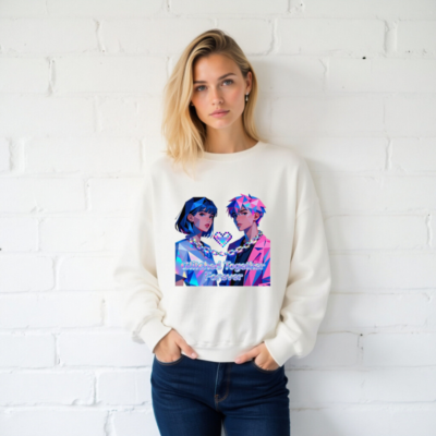 Show your digital love with this unisex crew neck sweatshirt featuring a vibrant pixel-art design of two characters linked by a glowing chain and a heart. The ‘Glitched Together Forever’ text adds nostalgic cyberpunk charm. Made for comfort and style, perfect for fans of retro-futuristic aesthetics. Soft cotton blend, relaxed fit, versatile for everyday wear.