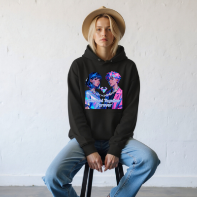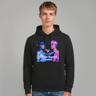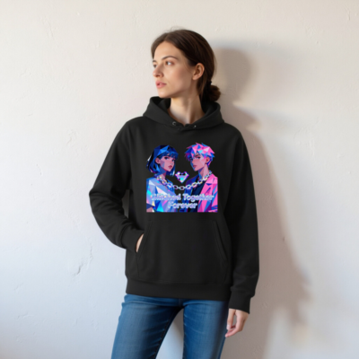 Wear the ‘Glitched Together Forever’ unisex essential eco hoodie—featuring vibrant pixel-art anime couple design with chain-link heart motif. Made from sustainable materials, this soft, comfortable hoodie suits all genders and fits casual, cyberpunk, or retro-futuristic styles. Perfect for fans of digital art, gaming culture, and meaningful fashion. Lightweight, durable, and ethically crafted for everyday wear.