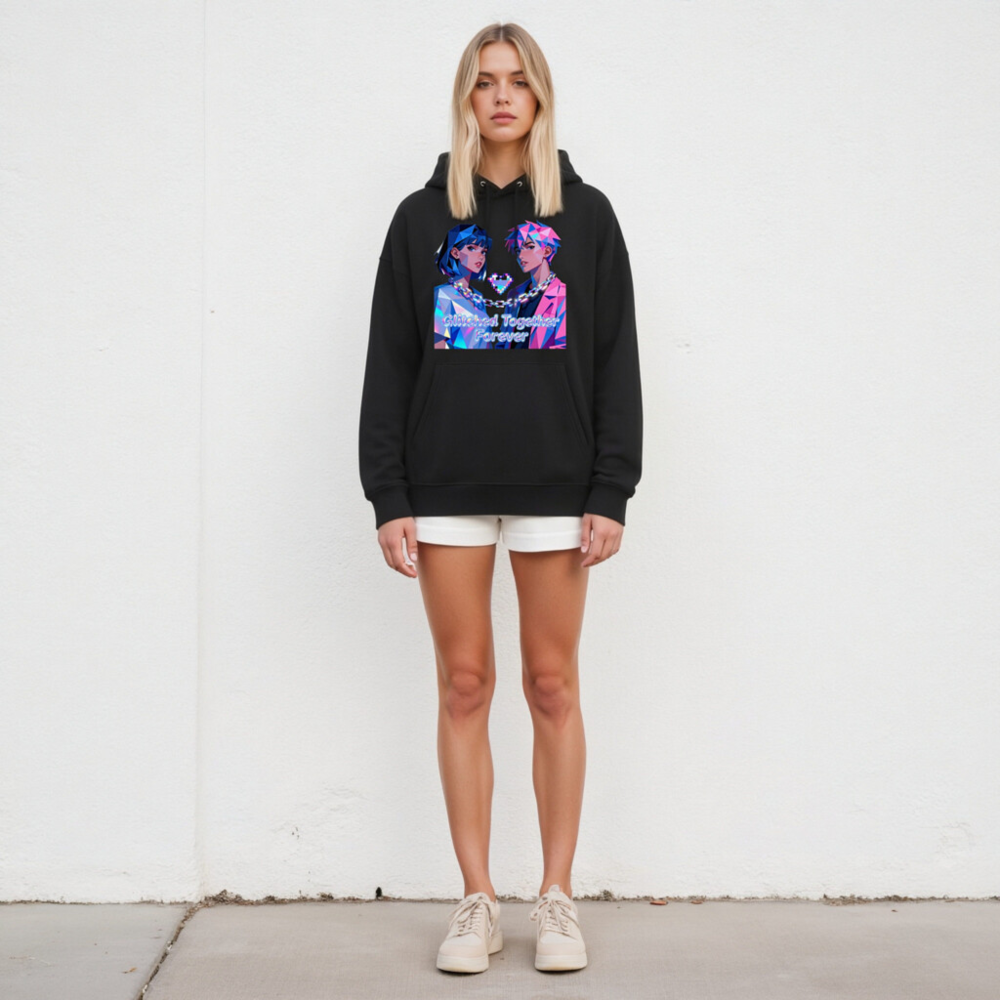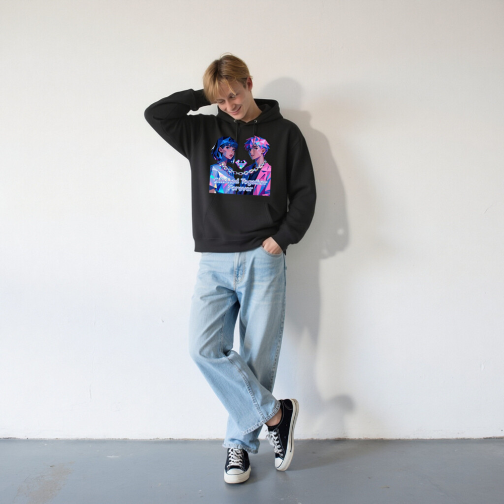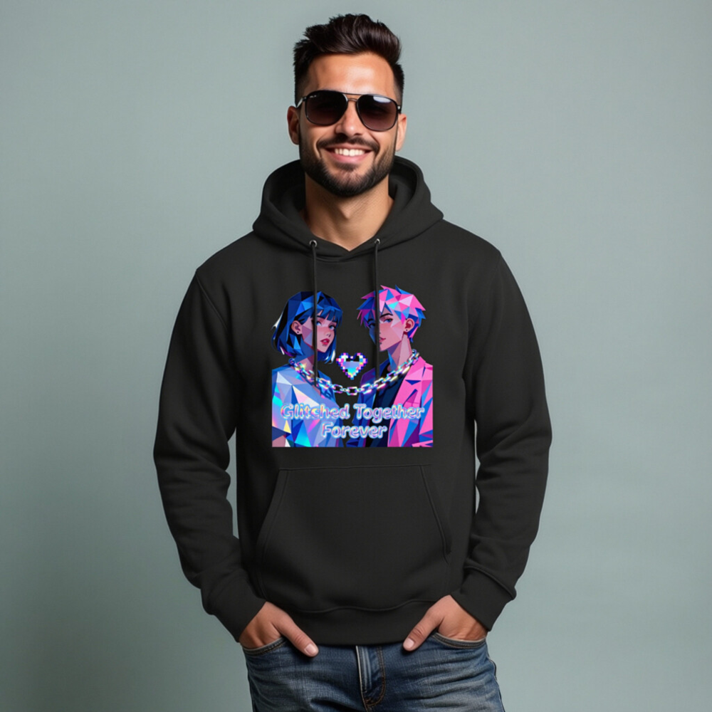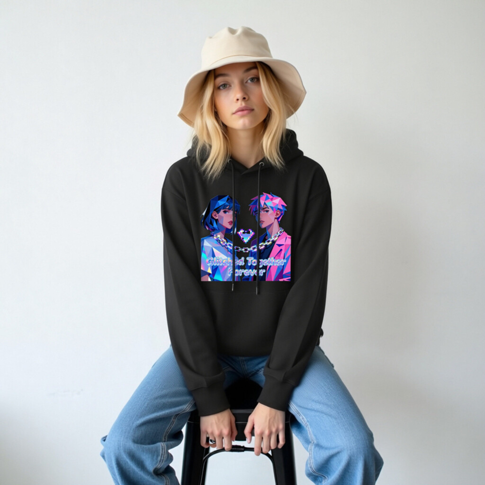 Wear the ‘Glitched Together Forever’ unisex essential eco hoodie—featuring vibrant pixel-art anime couple design with chain-link heart motif. Made from sustainable materials, this soft, comfortable hoodie suits all genders and fits casual, cyberpunk, or retro-futuristic styles. Perfect for fans of digital art, gaming culture, and meaningful fashion. Lightweight, durable, and ethically crafted for everyday wear.
