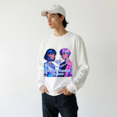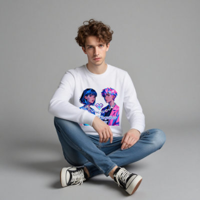 Wear the ‘Glitched Together Forever’ unisex organic sweatshirt—featuring vibrant pixel-art couple design with chain and heart motif. Made from certified organic cotton, this eco-friendly garment offers soft comfort and bold retro-futuristic style. Ideal for lovers of digital art, gaming culture, and sustainable fashion. Sustainable, stylish, and proudly unisex.