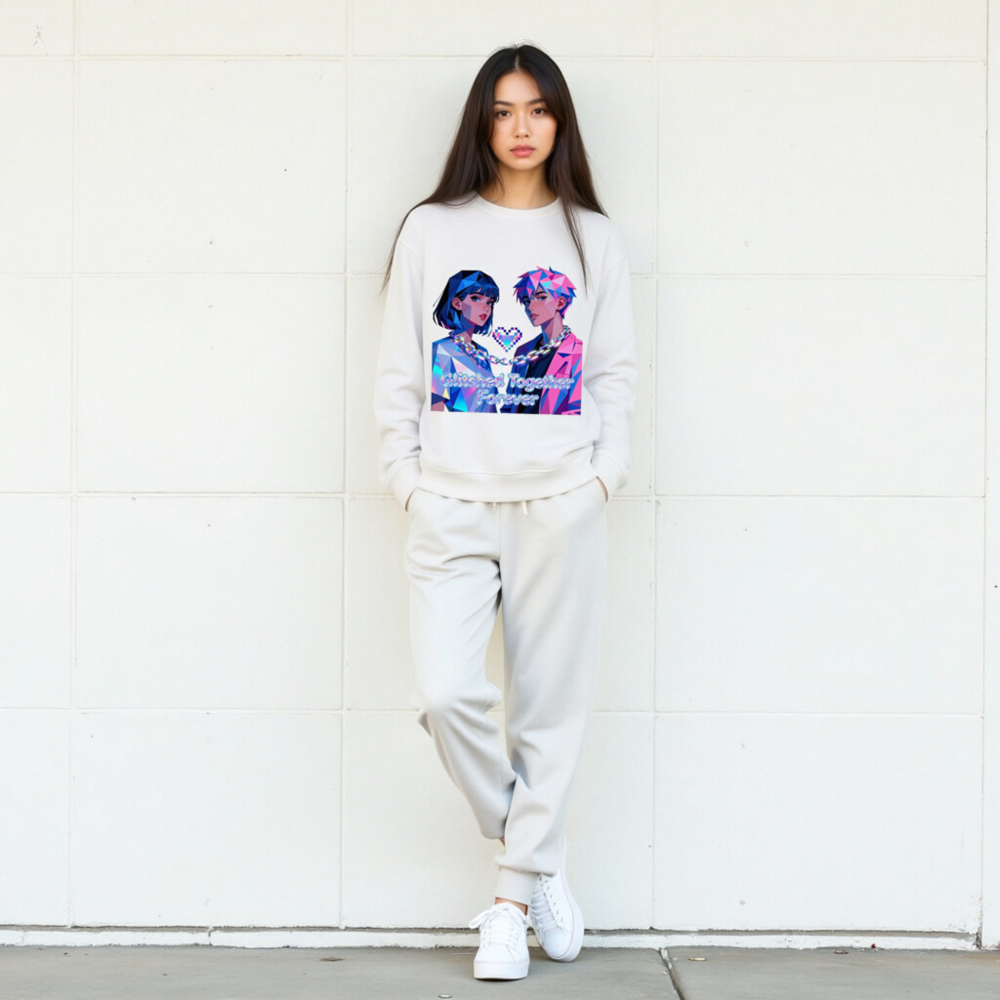 Glitched Together Forever Unisex Organic Sweatshirt – Pixel Art Couple Design
