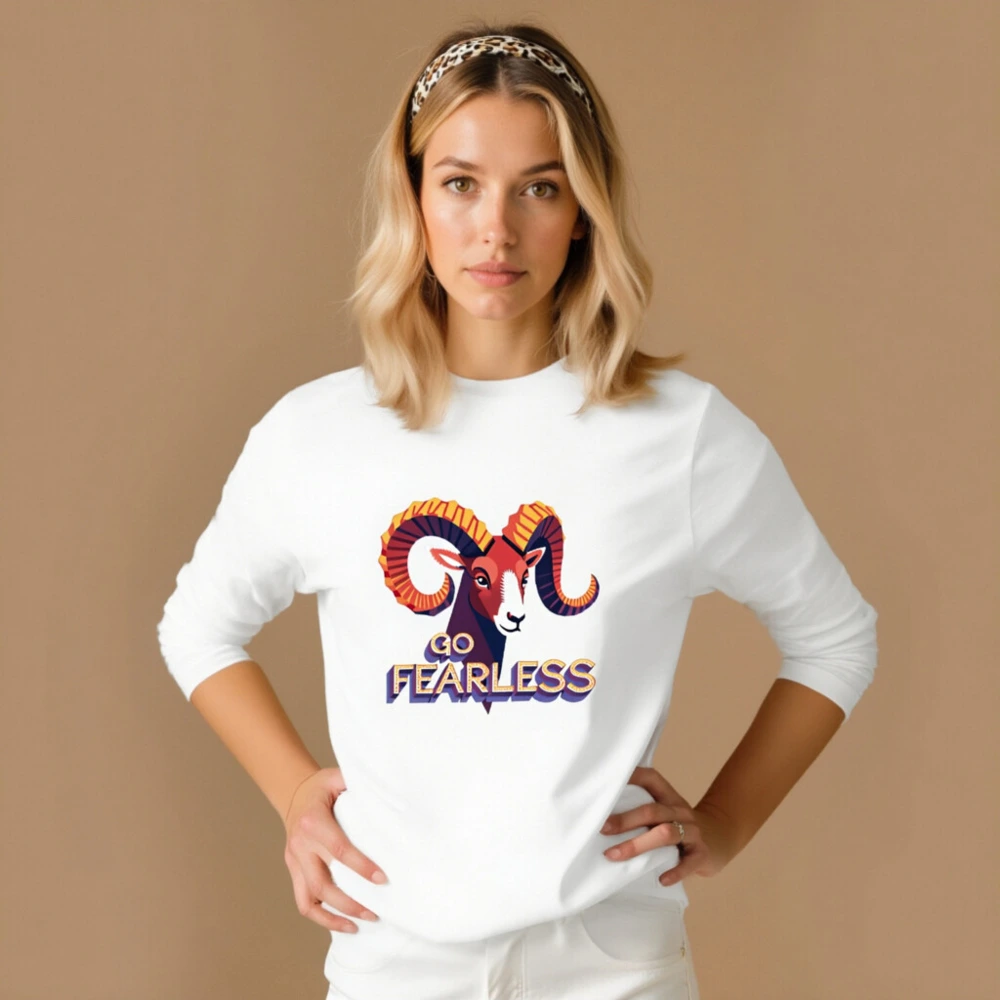 Go Fearless Ram Unisex Long Sleeve Tee – Bold Animal Graphic