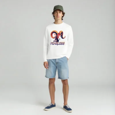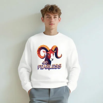 Wear confidence with our unisex organic sweatshirt featuring a bold, colorful ram graphic and the empowering ‘Go Fearless’ message. Made from certified organic cotton for softness and sustainability. Designed for everyday comfort, this versatile crewneck fits all genders. Ideal for conscious consumers seeking ethical fashion without compromising style or quality.