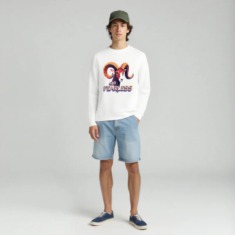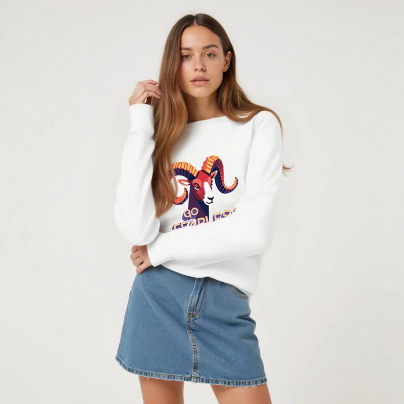 Wear confidence with our unisex organic sweatshirt featuring a bold, colorful ram graphic and the empowering ‘Go Fearless’ message. Made from certified organic cotton for softness and sustainability. Designed for everyday comfort, this versatile crewneck fits all genders. Ideal for conscious consumers seeking ethical fashion without compromising style or quality.