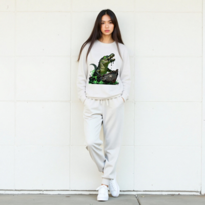 A striking unisex long sleeve tee featuring a vivid green crocodile with glowing eyes, emerging from murky waters beside a weathered boat marked ‘Ferryman of the Styx’ and a skull emblem. The design blends fantasy horror with dark humor, perfect for fans of mythic creatures and gothic aesthetics. High-quality print on soft, comfortable fabric—ideal for everyday wear or as a conversation-starting statement piece.