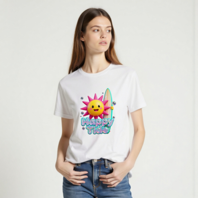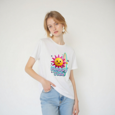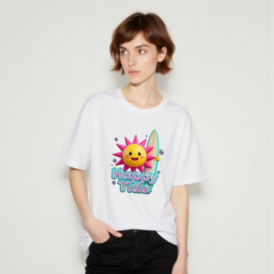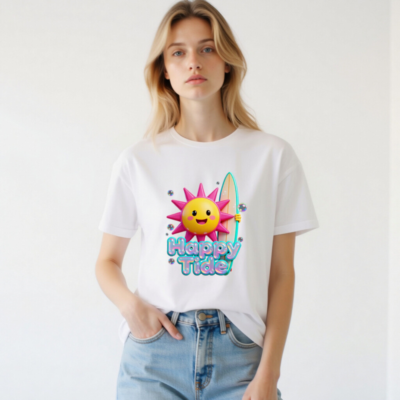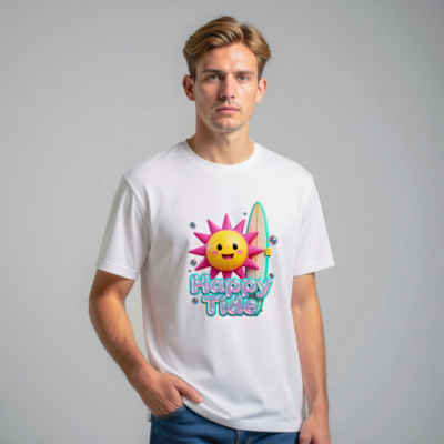 Celebrate summer with our Happy Tide Unisex Staple T-Shirt—featuring a cheerful sun holding a surfboard, vibrant pink and yellow accents, and playful bubble details. Crafted for everyday comfort, this classic fit tee pairs perfectly with beach days or casual outings. Ideal for all ages and genders, it’s made from soft, durable fabric for reliable wear. The eye-catching ‘Happy Tide’ graphic delivers joyful vibes—perfect for surf lovers and sunny-day enthusiasts.