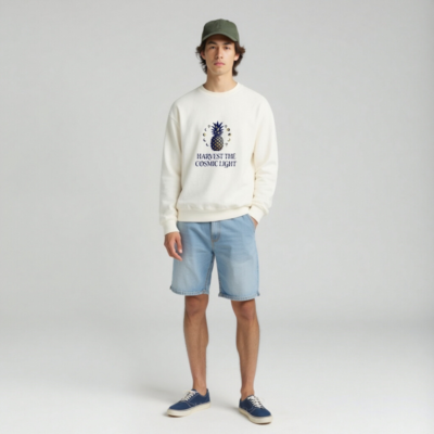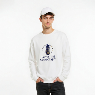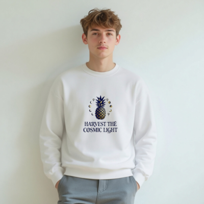 A unisex crew neck sweatshirt featuring a cosmic pineapple design with moon phases and celestial motifs. Soft, comfortable, and stylish—ideal for everyday wear. Perfect gift for dreamers and cosmic enthusiasts. Made with quality fabric for lasting comfort.