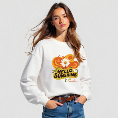 Brighten your day with this cheerful ‘Hello Sunshine’ unisex long sleeve tee. Features a vibrant daisy with smiley face, retro swirls in orange and yellow, and bold text on a clean white base. Soft cotton blend for comfort, versatile fit for all genders. Perfect for casual wear, spring/summer, or as a joyful gift. Designed for everyday positivity.