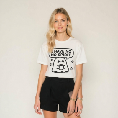 I Have No Spirit Ghost Tee – Unisex Staple T-Shirt with Cute Coffee Ghost Design