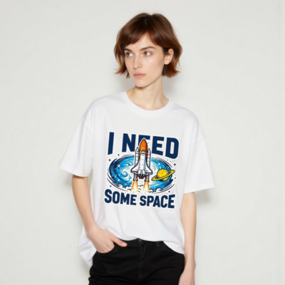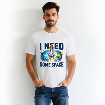 I Need Some Space T-Shirt – Unisex Organic Cotton Space Shuttle & Saturn Design