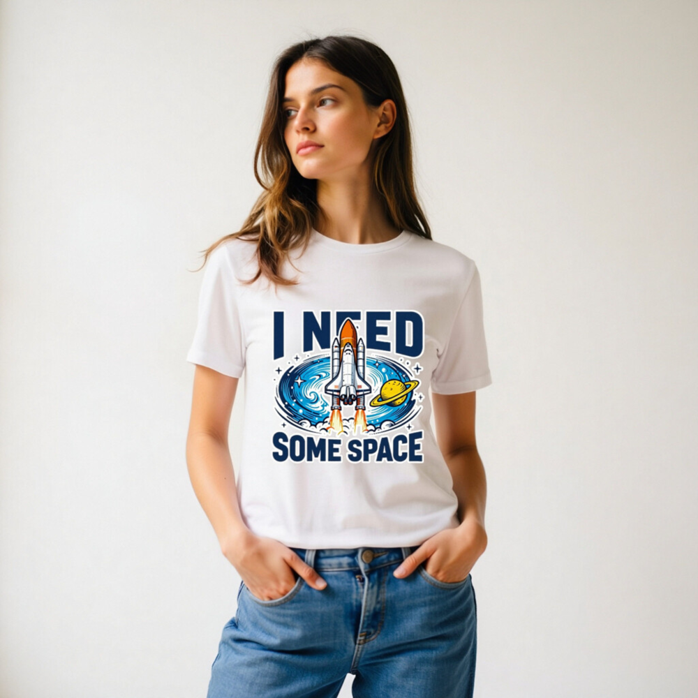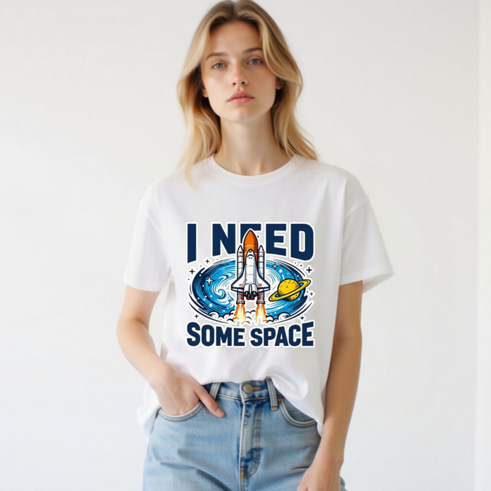 I Need Some Space T-Shirt – Unisex Organic Cotton Space Shuttle & Saturn Design