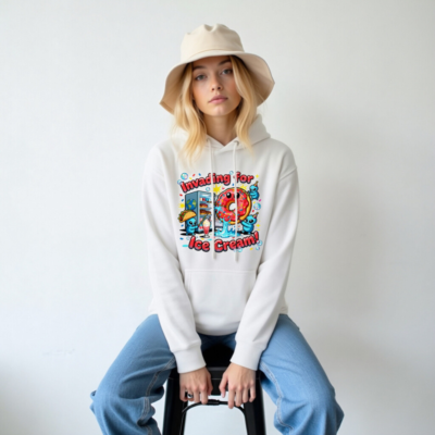 Show off your love for sweet treats with this playful unisex premium pullover hoodie. Featuring a vibrant ‘Invading for Ice Cream!’ graphic—complete with kawaii aliens, a smiling donut, taco, milkshake, and fridge—this cozy hoodie blends humor and comfort. Made for everyday wear, it’s perfect for ice cream lovers, pop culture fans, and anyone who enjoys whimsical, eye-catching apparel.
