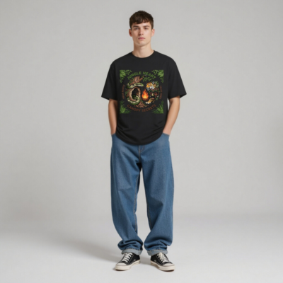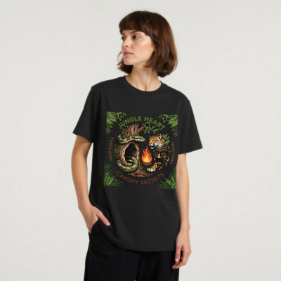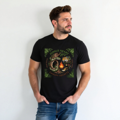 Wear the wild with our Jungle Heart unisex organic cotton t-shirt—soft, breathable, and responsibly crafted. Featuring a vibrant jungle-themed graphic with snake, jaguar, fire, and mask, this design celebrates nature’s mystery. Made from certified organic cotton for comfort and sustainability. Ideal for eco-conscious adventurers seeking style that aligns with values. Free shipping on orders over $50.