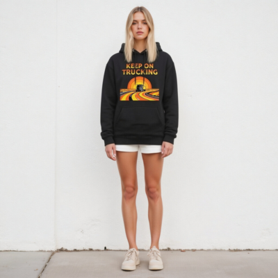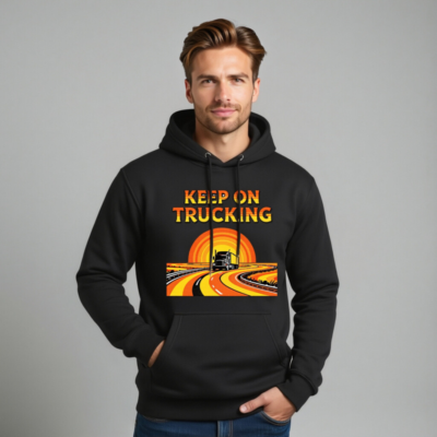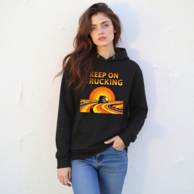Wear the ‘Keep On Trucking’ spirit with this unisex premium pullover hoodie. Featuring a vibrant retro-style graphic of a semi-truck on a winding road under a sunset, it’s designed for comfort and style. Made from high-quality fabric for everyday wear. Perfect gift for truckers, drivers, or anyone who loves road trips and vintage aesthetics.