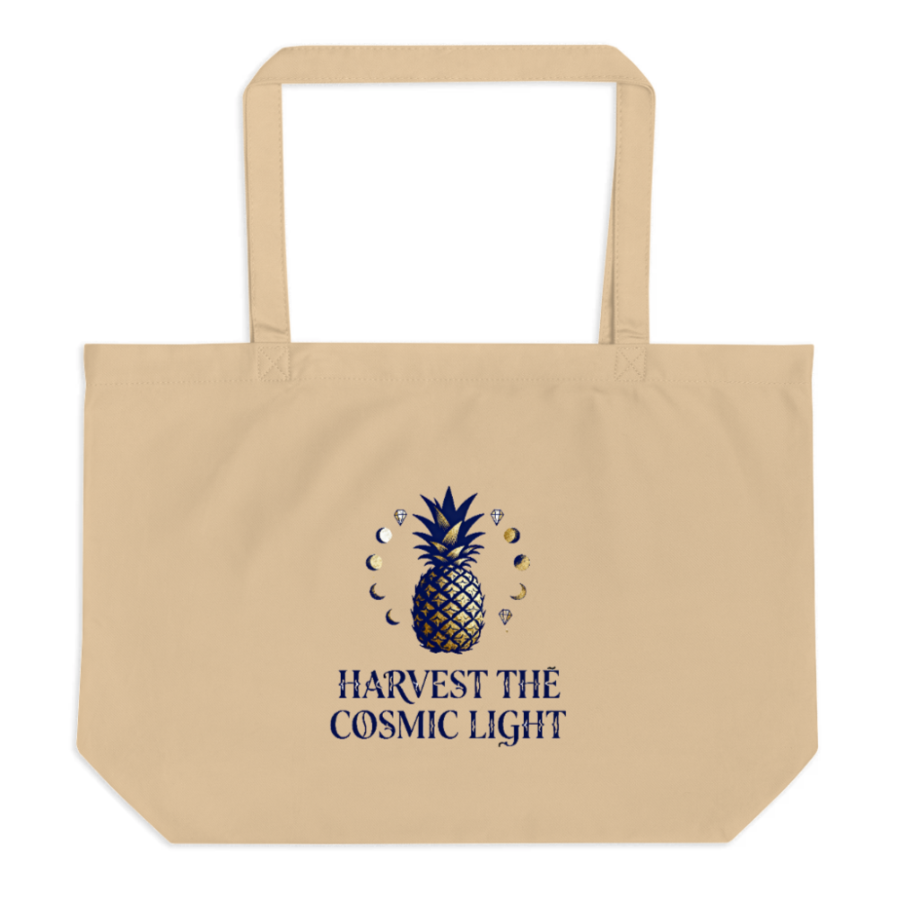 Large Organic Tote Bag | Harvest the Cosmic Light Pineapple Design