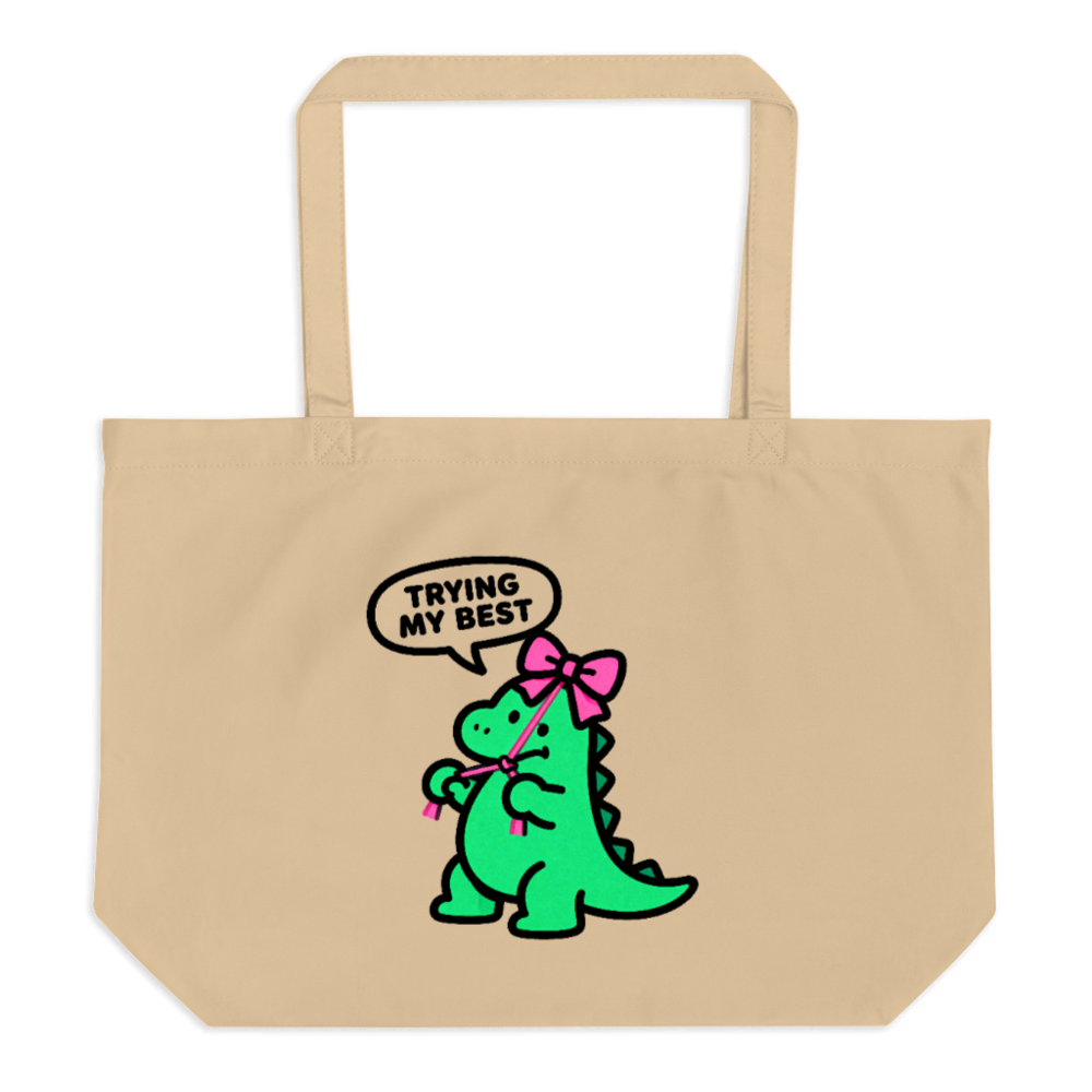 Large Organic Tote Bag with Cute Dino Design – Trying My Best