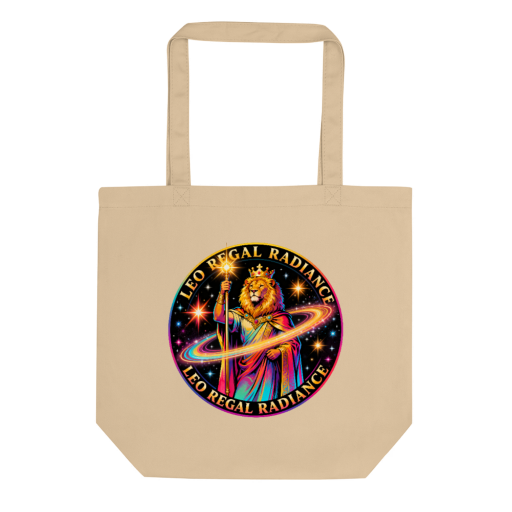 Leo Regal Radiance Eco Oyster Tote Bag | Sustainable Cotton Tote with Cosmic Lion Design