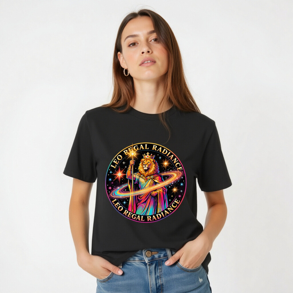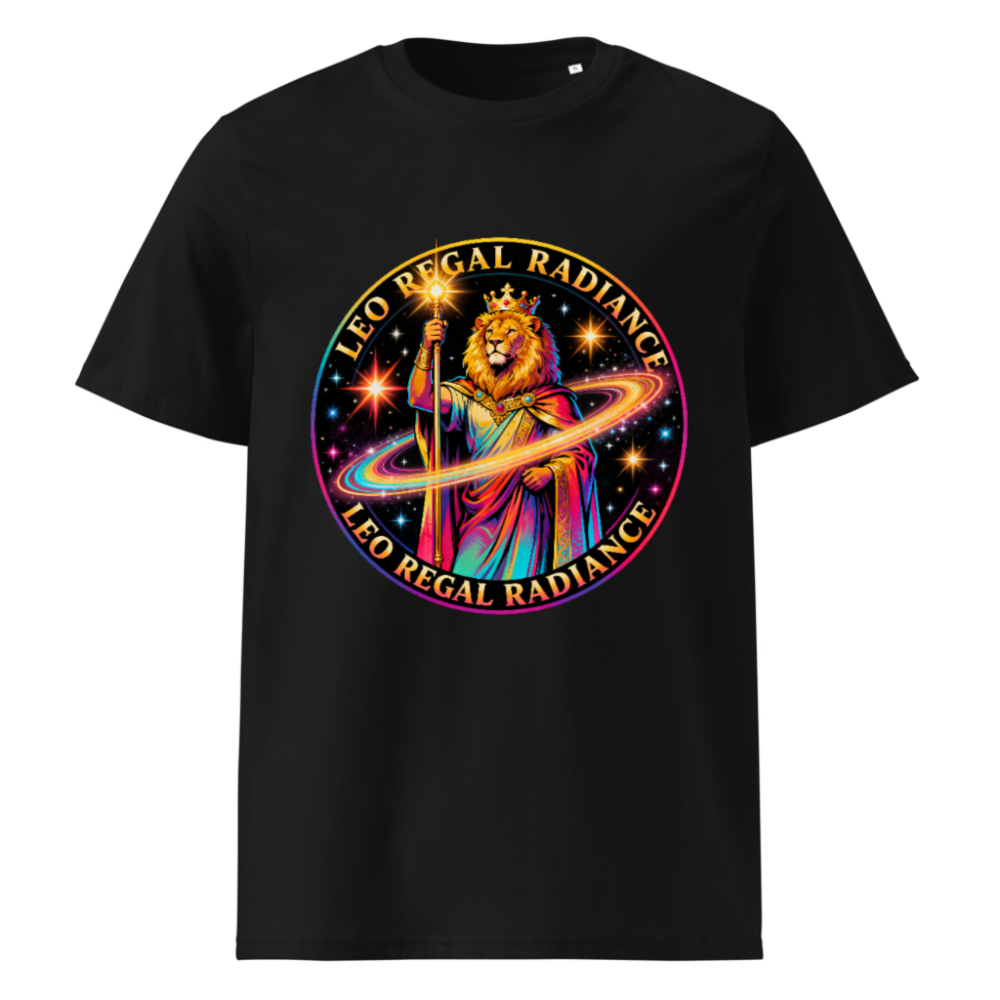 Wear the regal power of Leo with this unisex organic cotton t-shirt featuring a vibrant, cosmic lion king design—crowned, holding a glowing staff, surrounded by a radiant galaxy. Crafted from certified organic cotton for comfort and sustainability. Perfect for astrology lovers, zodiac enthusiasts, or anyone embracing bold self-expression. Eco-friendly, soft, and made to inspire.
