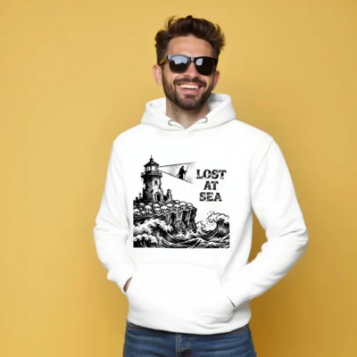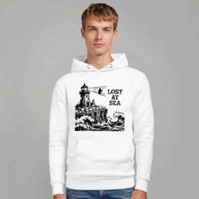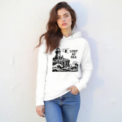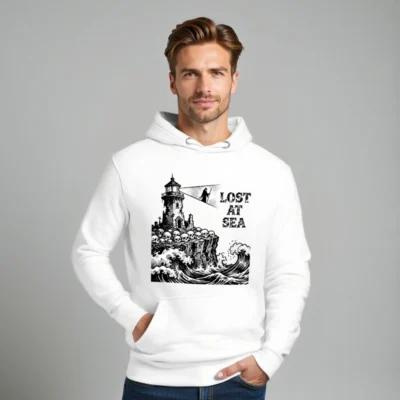 Lost at Sea Unisex Hoodie – Premium Pullover with Lighthouse & Skulls Graphic