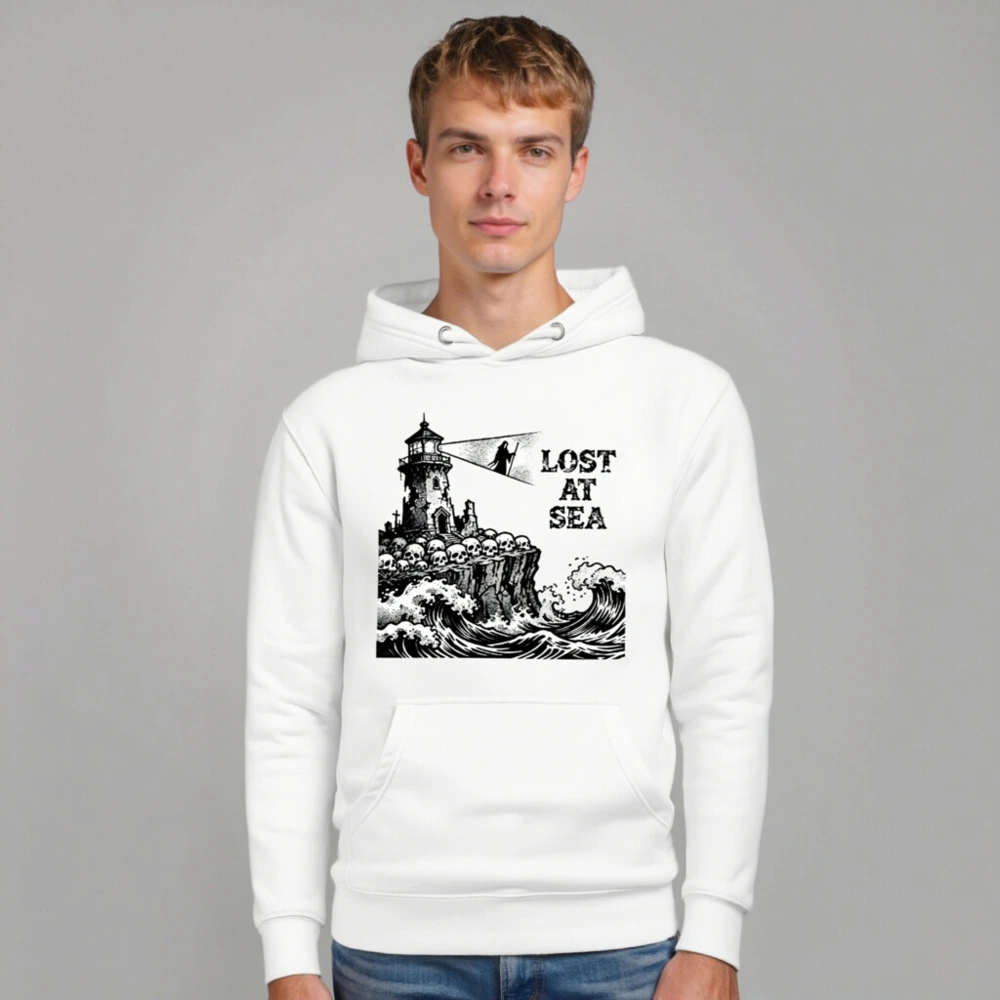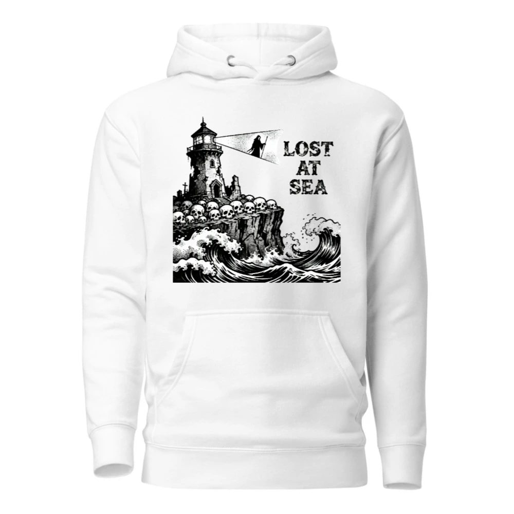Lost at Sea Unisex Hoodie – Premium Pullover with Lighthouse & Skulls Graphic