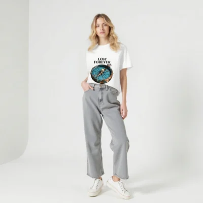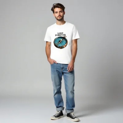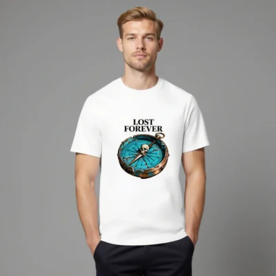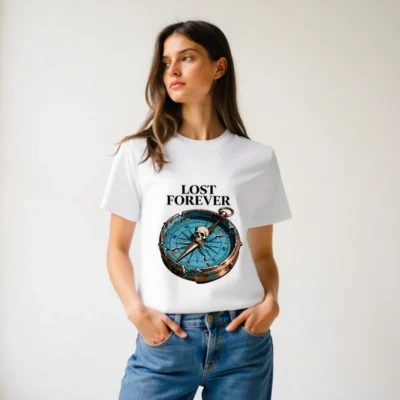 Wear the ‘Lost Forever’ design: a cracked vintage compass with skull needle, evoking mystery and adventure. Made from unisex organic cotton for comfort and sustainability. This bold graphic tee blends gothic aesthetics with timeless symbolism—perfect for those who embrace the unknown. Eco-conscious choice, ethically sourced materials.