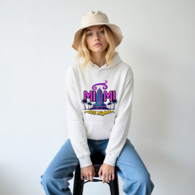 Wear Miami’s iconic vibe with this premium unisex pullover hoodie featuring vibrant ‘MIAMI’ neon typography, a retro art-deco tower, palm trees, and ‘305 Nights’ script. Soft, comfortable fit for everyday style. Designed for fans of Miami culture—no extra claims or certifications added.