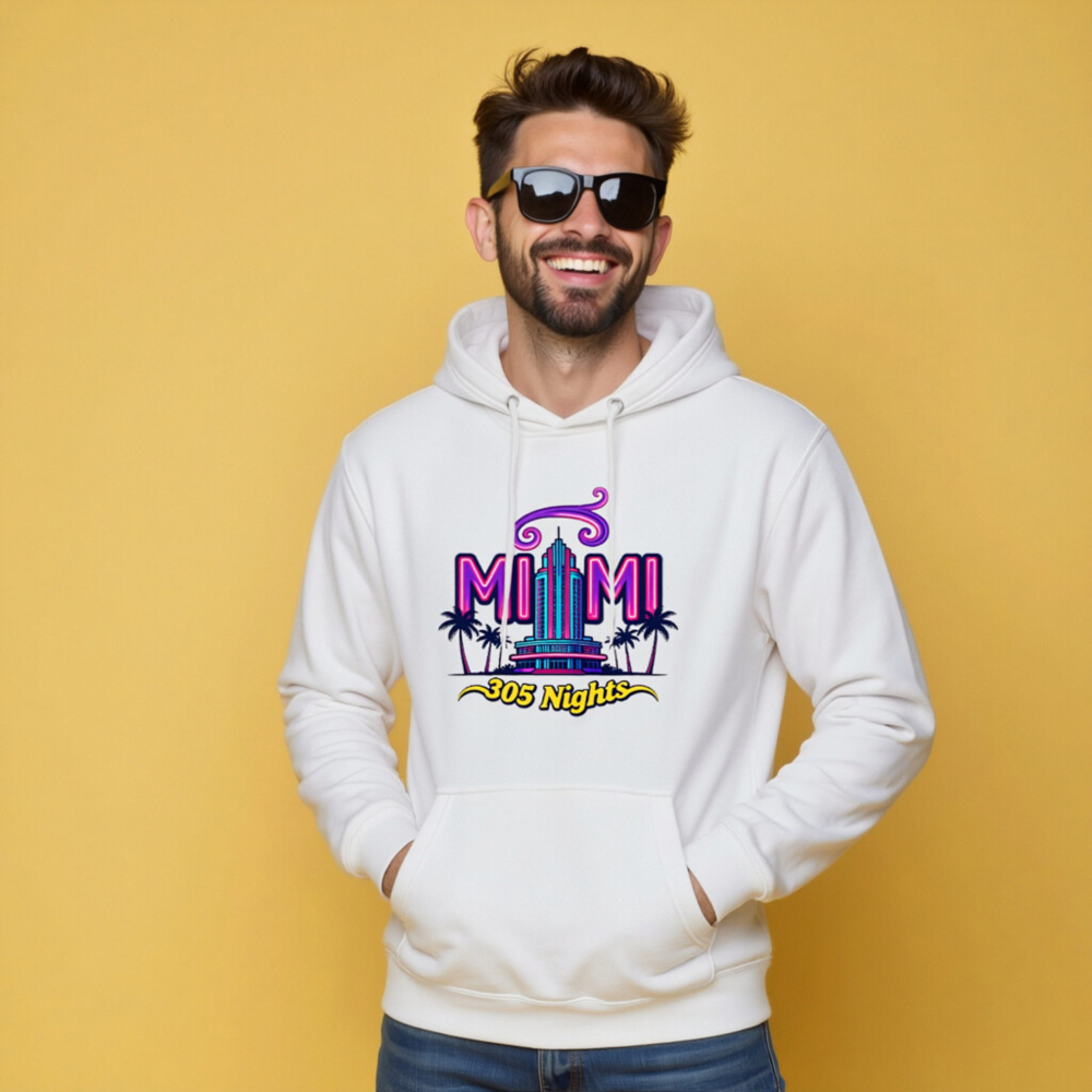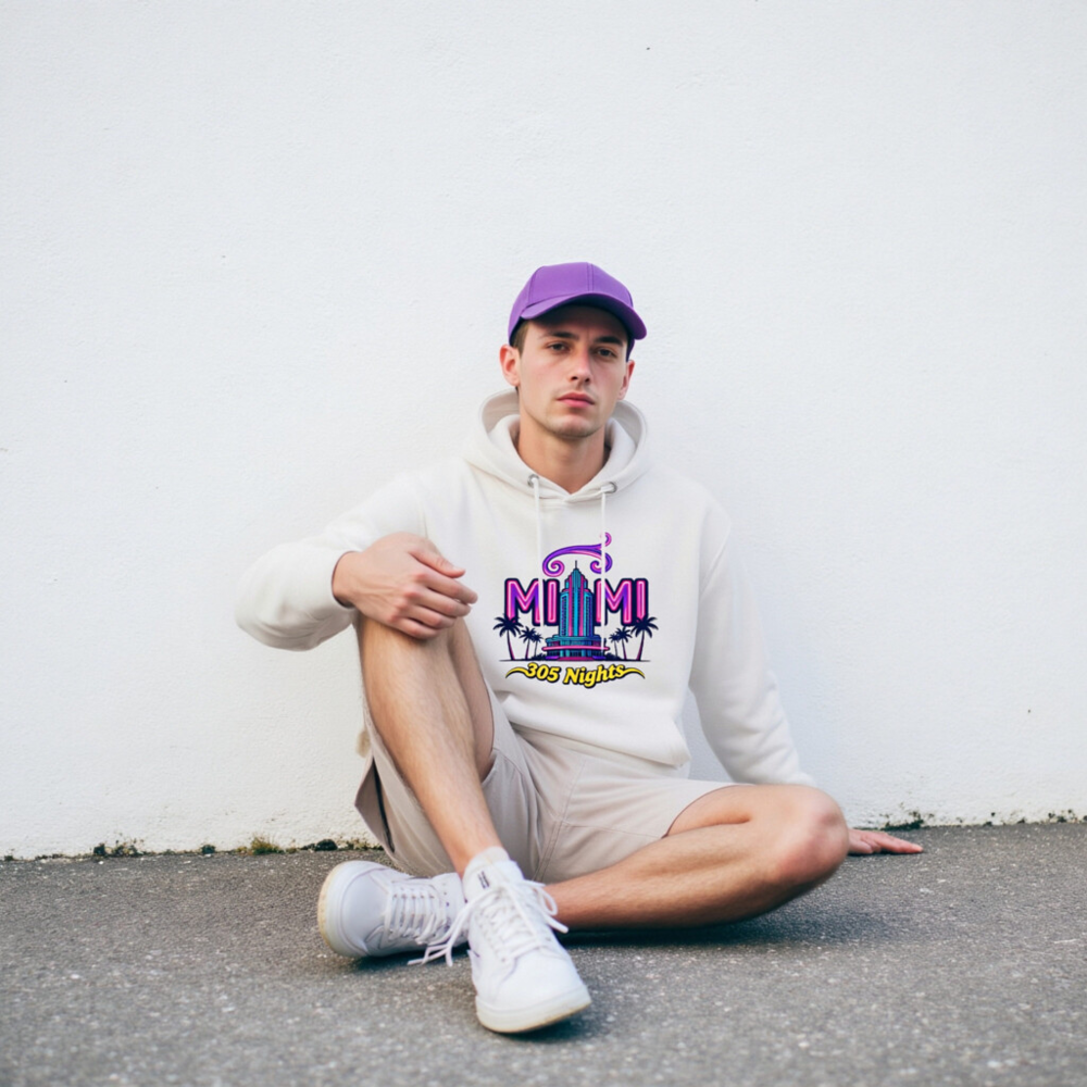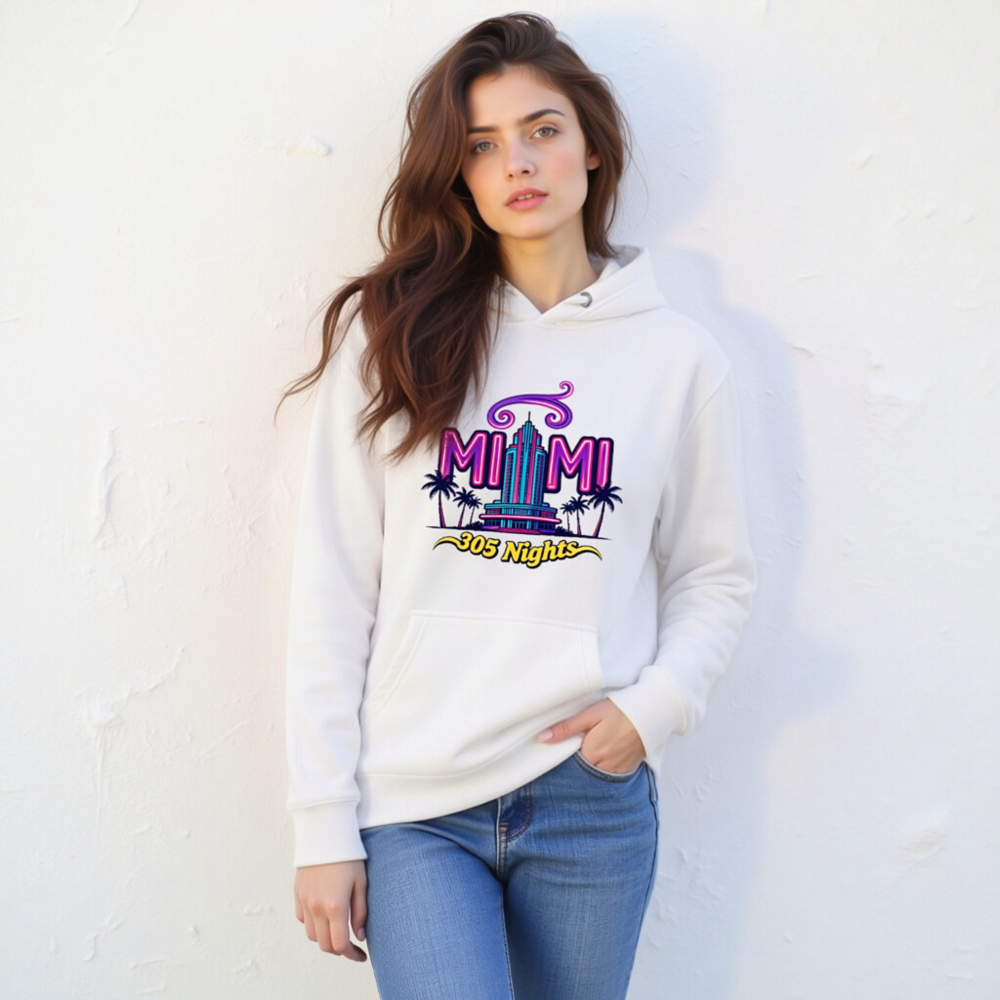 Miami 305 Nights Unisex Hoodie | Premium Pullover with Neon Art