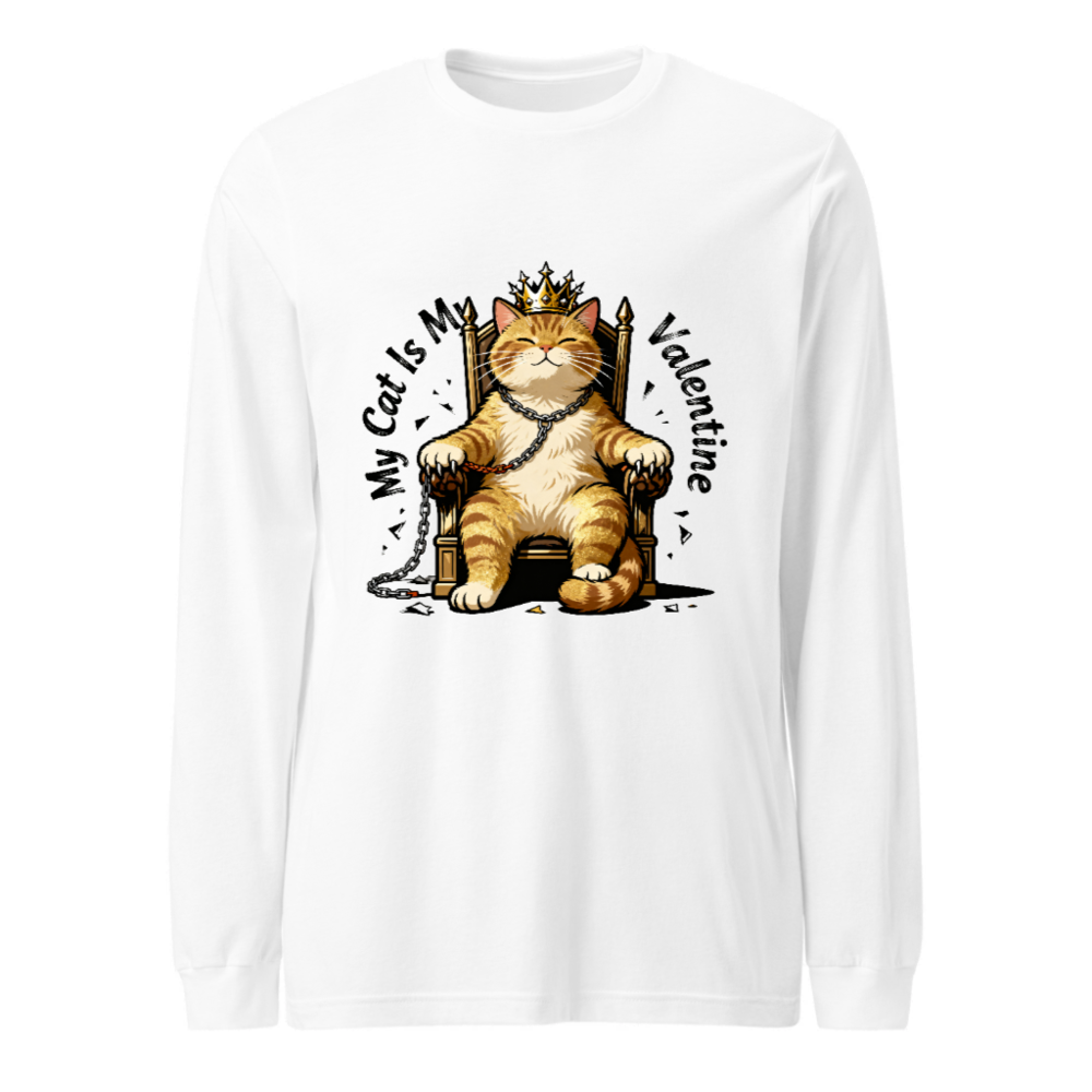 My Cat Is My Valentine Long Sleeve Tee – Orange Tabby King Crown Throne