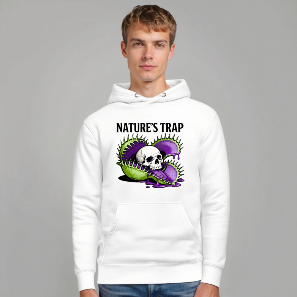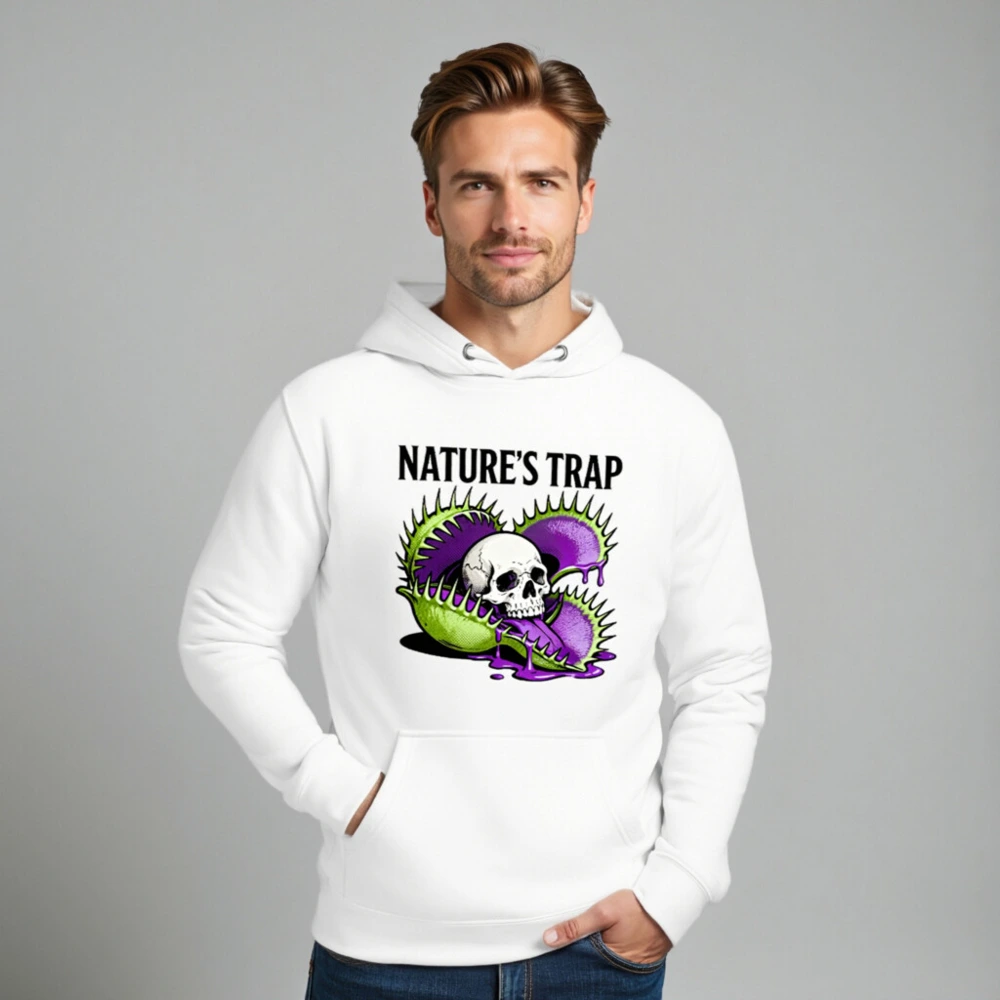 Nature’s Trap Hoodie – Unisex Premium Pullover with Skull & Venus Flytrap Design