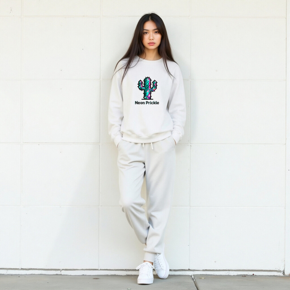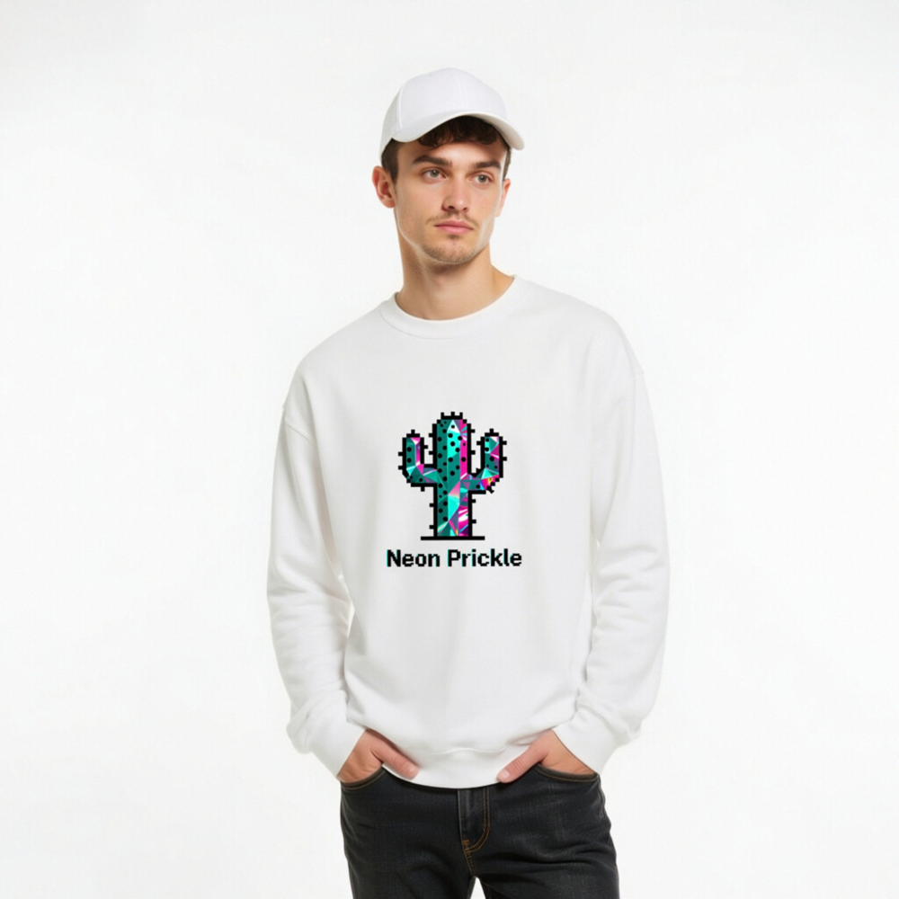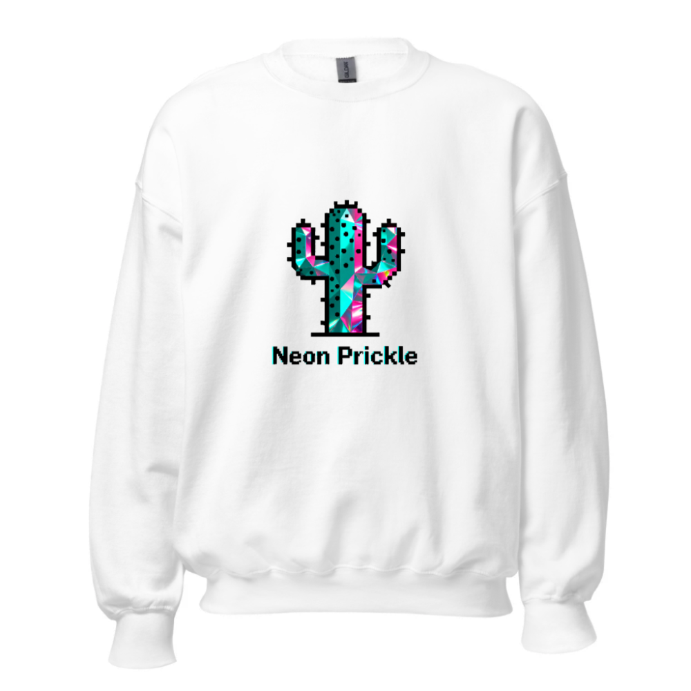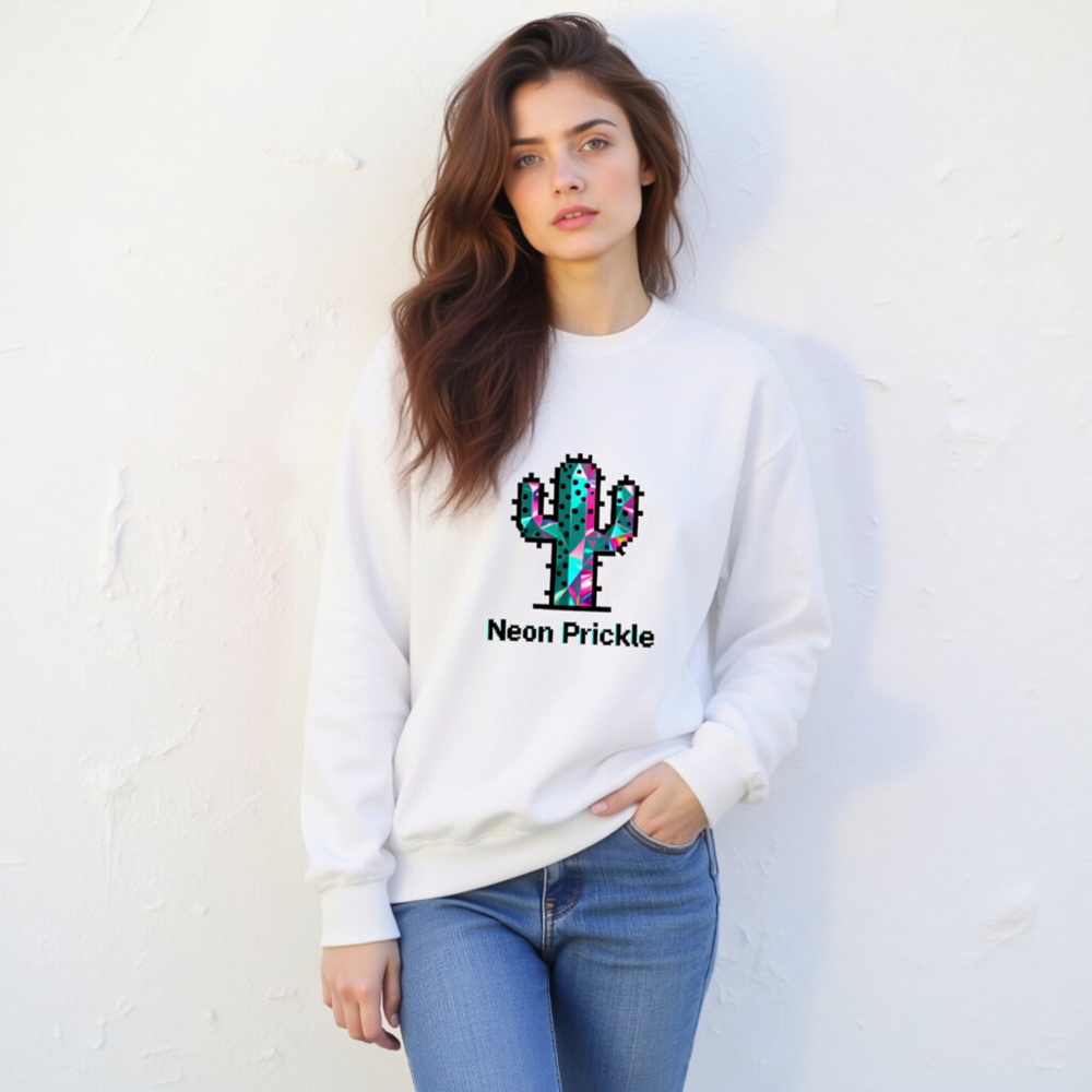 Showcase bold desert vibes with this unisex crew neck sweatshirt featuring a striking pixel-art cactus in neon teal, pink, and magenta. The vibrant geometric ‘Neon Prickle’ design stands out on premium soft cotton blend fabric. Perfect for casual wear, festivals, or everyday style—unisex fit, comfortable, and eye-catching. Ideal for cactus lovers and fans of retro-futuristic art.
