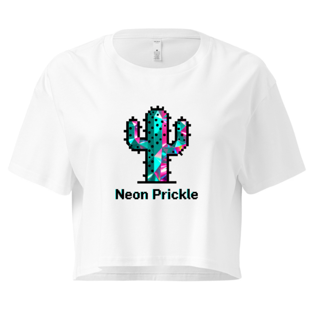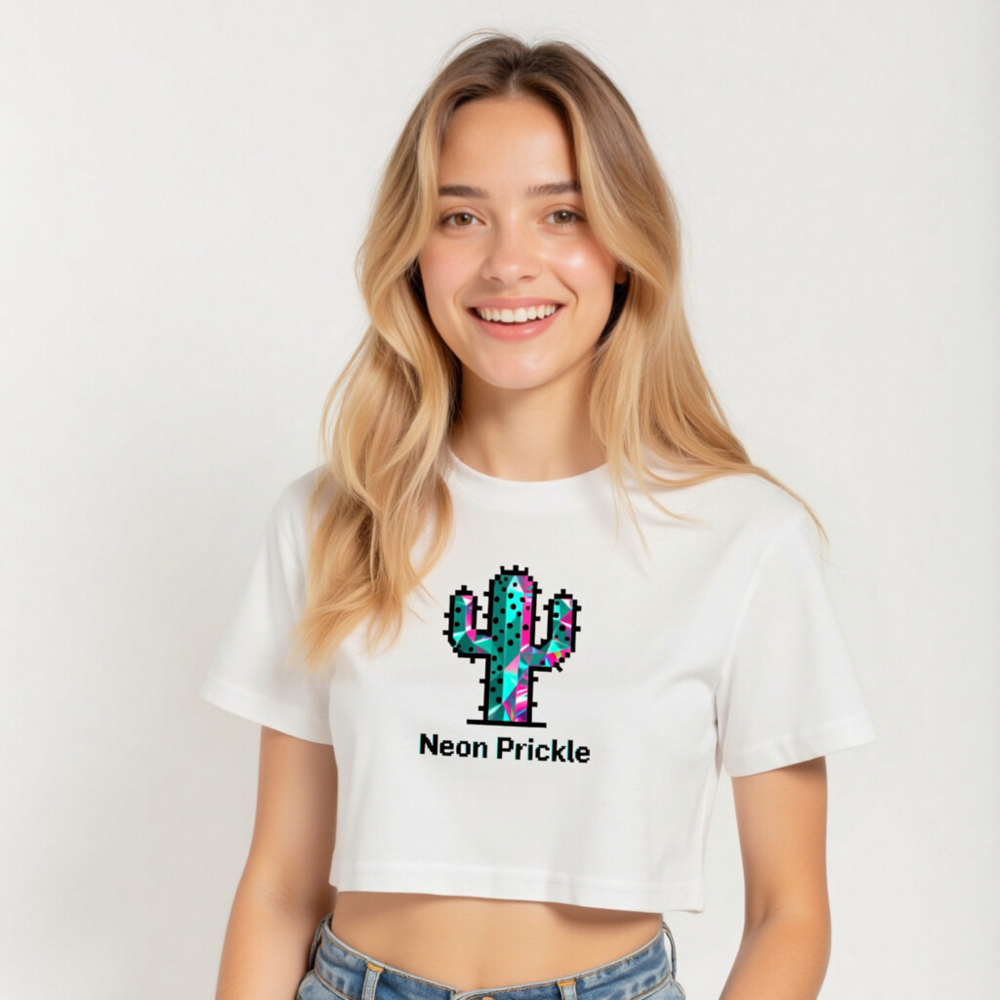Neon Prickle Women’s Crop Top – Pixel Cactus Design, Short Sleeve