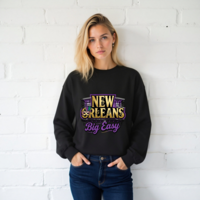 New Orleans Big Easy Unisex Crew Neck Sweatshirt – Gold & Purple Mardi Gras Design