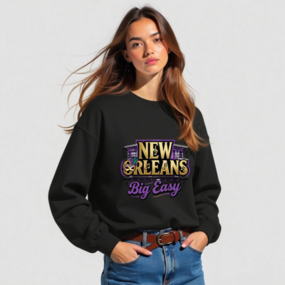 Show your love for the Big Easy with this unisex crew neck sweatshirt featuring authentic New Orleans motifs: iconic wrought-iron balconies, a Mardi Gras mask with purple/gold feathers, musical notes, and bold ‘NEW ORLEANS’ text. Designed for comfort and style, it captures the city’s vibrant spirit in gold, purple, and black—perfect for fans of jazz, festivals, and Southern charm.