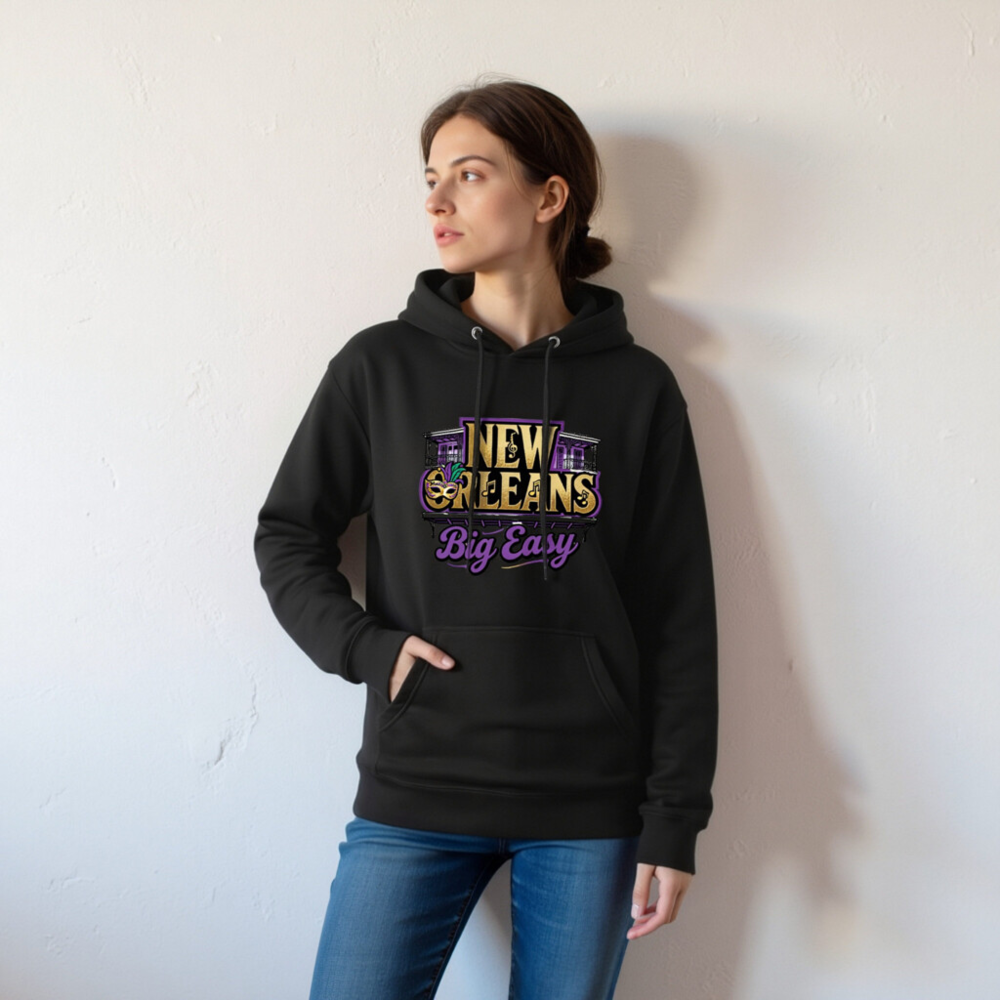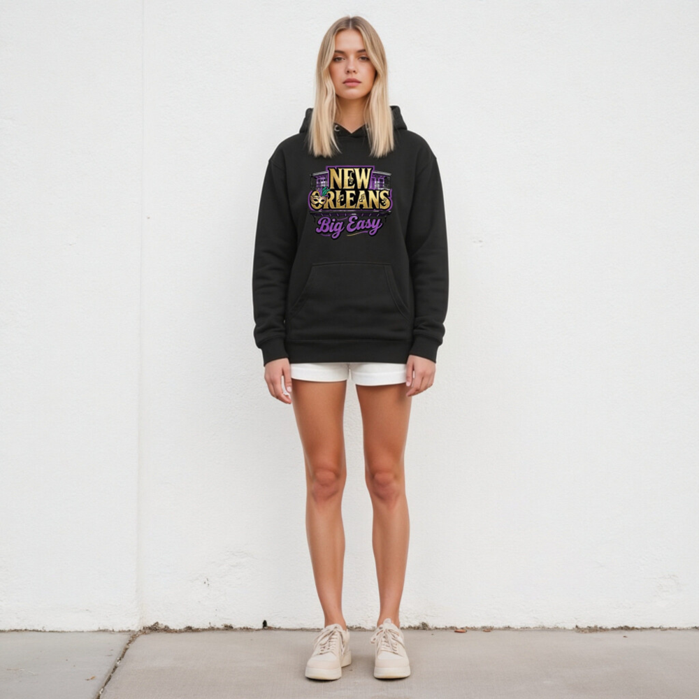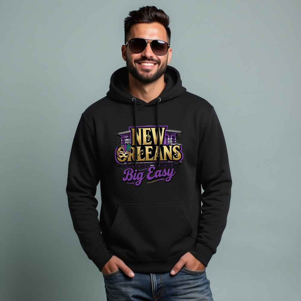 New Orleans Big Easy Unisex Pullover Hoodie – Premium Comfort, Mardi Gras Design