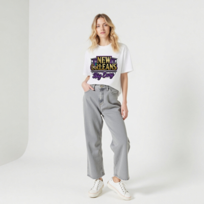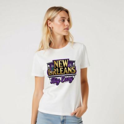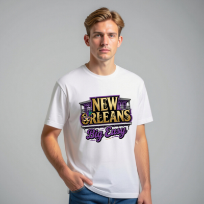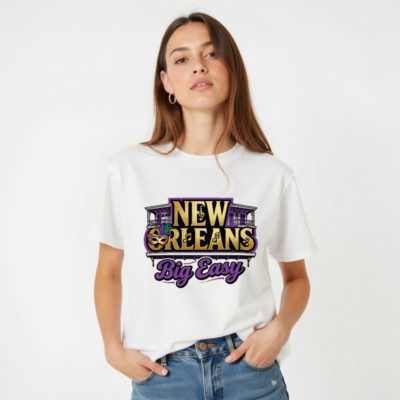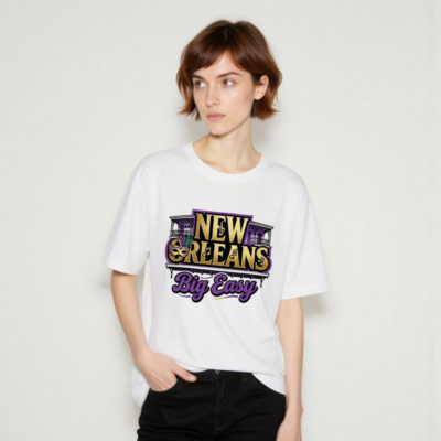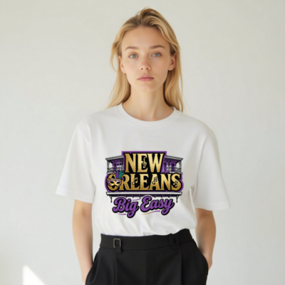 Celebrate New Orleans’ vibrant spirit with this unisex staple t-shirt featuring the iconic ‘New Orleans Big Easy’ design—complete with French Quarter architecture, a Mardi Gras mask, and musical notes in gold, purple, and green. Perfect for fans of jazz, festivals, and Southern charm. Soft cotton blend, classic fit, ideal for everyday wear or as a souvenir.