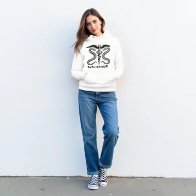 Featuring a bold black-and-white caduceus with skeletal snakes and wings, this unisex premium pullover hoodie combines medical symbolism with edgy streetwear style. Made for comfort and durability, it’s designed for healthcare professionals, students, or anyone who appreciates dark academia aesthetics. Soft cotton blend, classic fit, front pouch pocket. Perfect for everyday wear or as a statement piece.