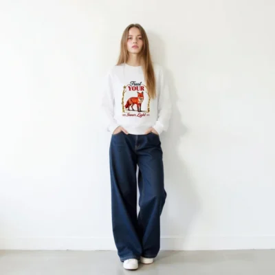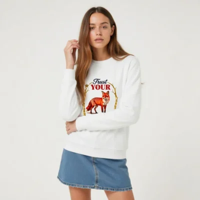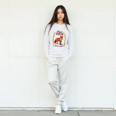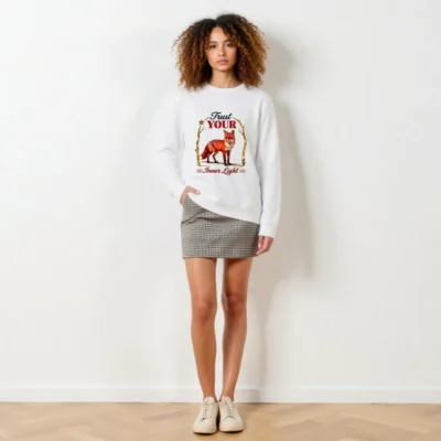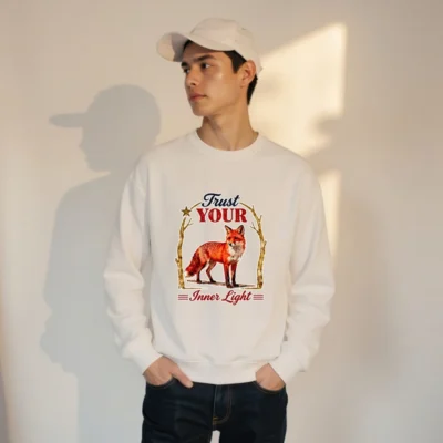 Organic Cotton Sweatshirt for Men & Women – ‘Trust Your Inner Light’ Fox Design