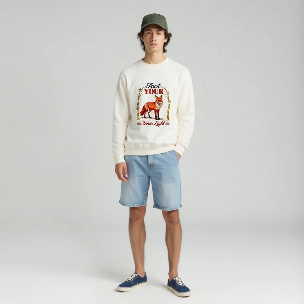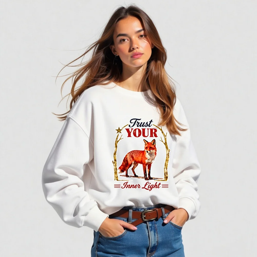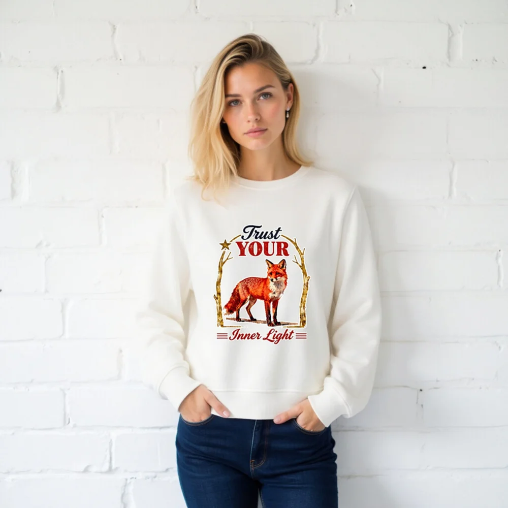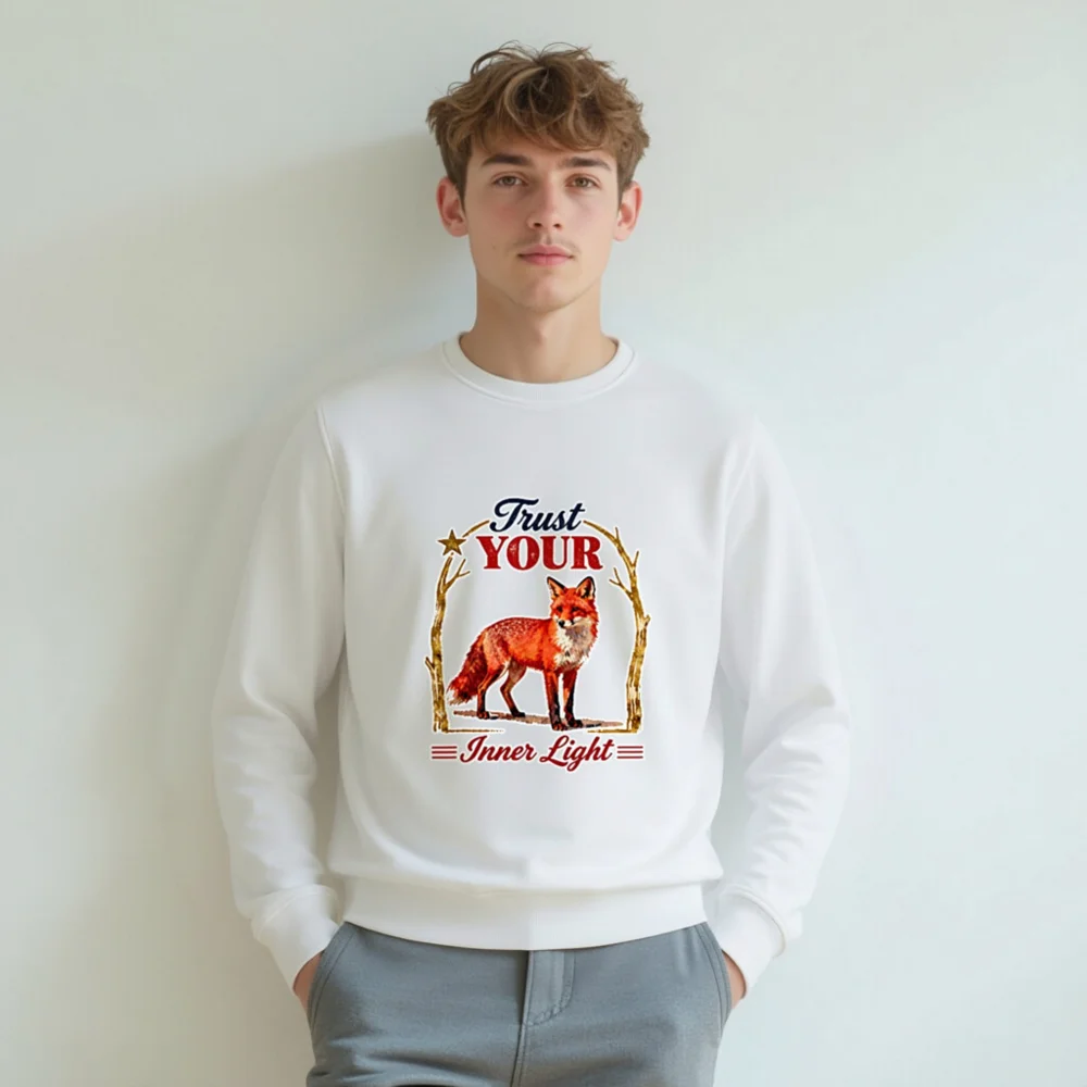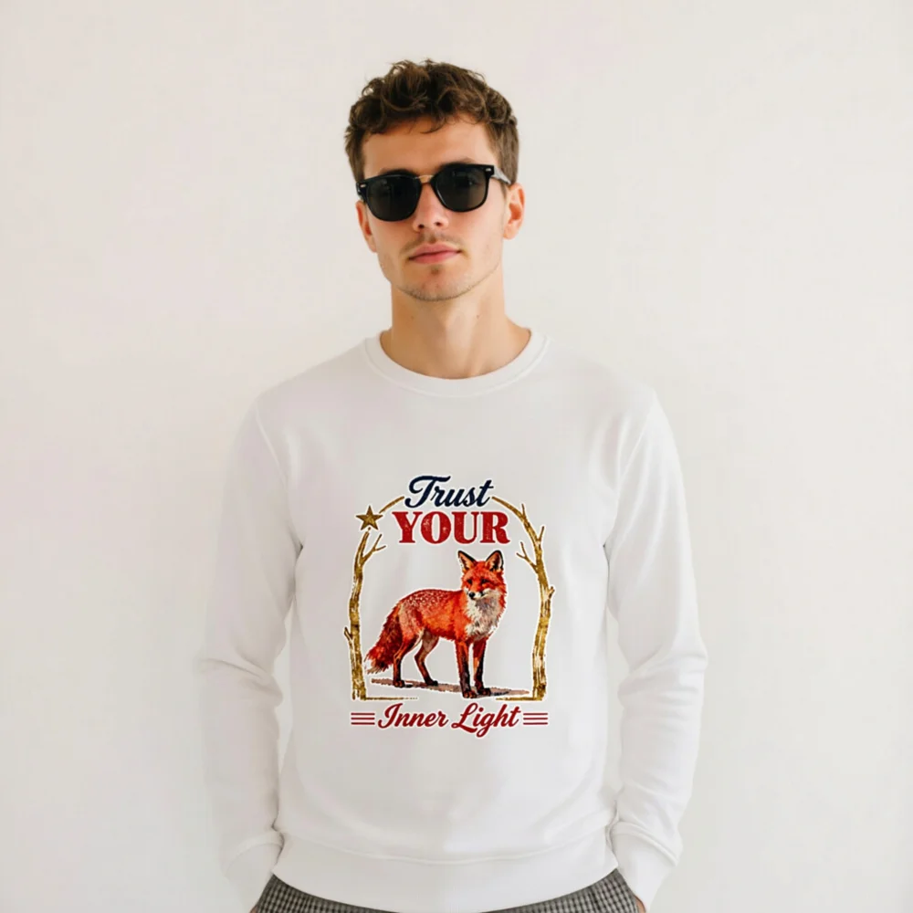 Organic Cotton Sweatshirt for Men & Women – ‘Trust Your Inner Light’ Fox Design