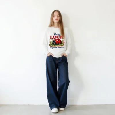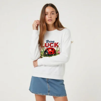 Organic Cotton Sweatshirt with Ladybug ‘Bring Luck’ Print – Unisex