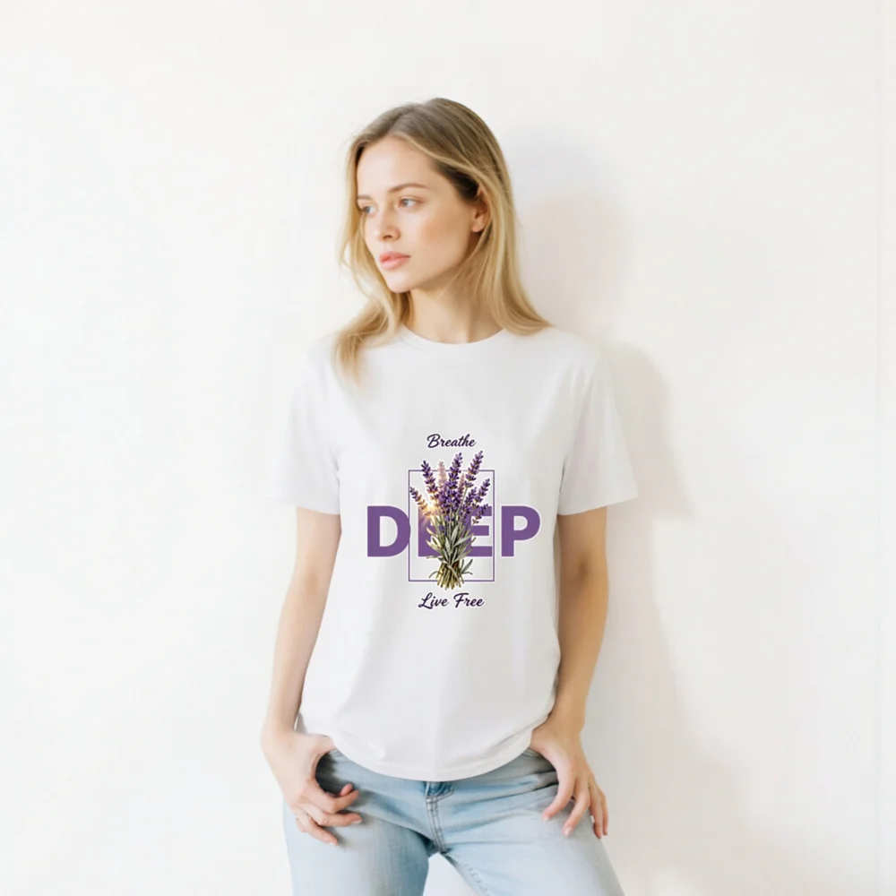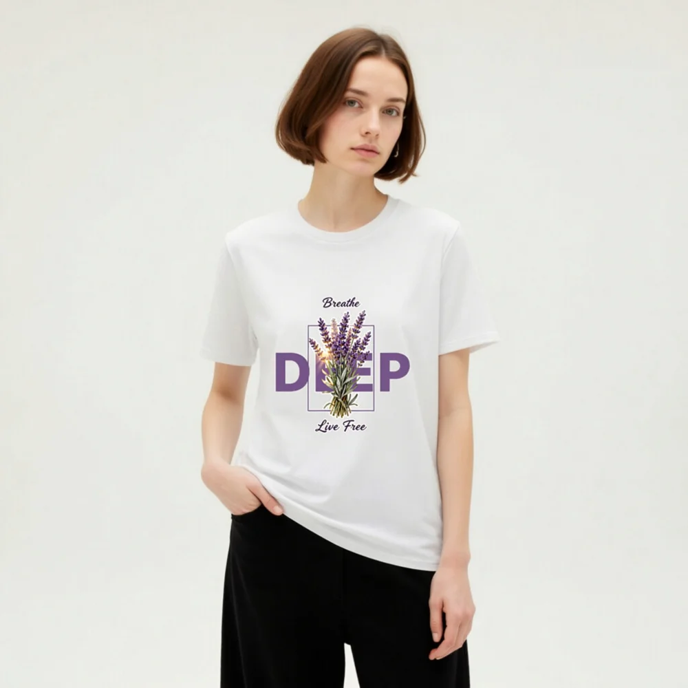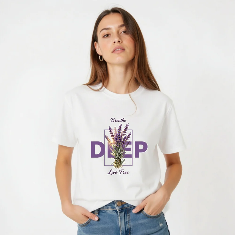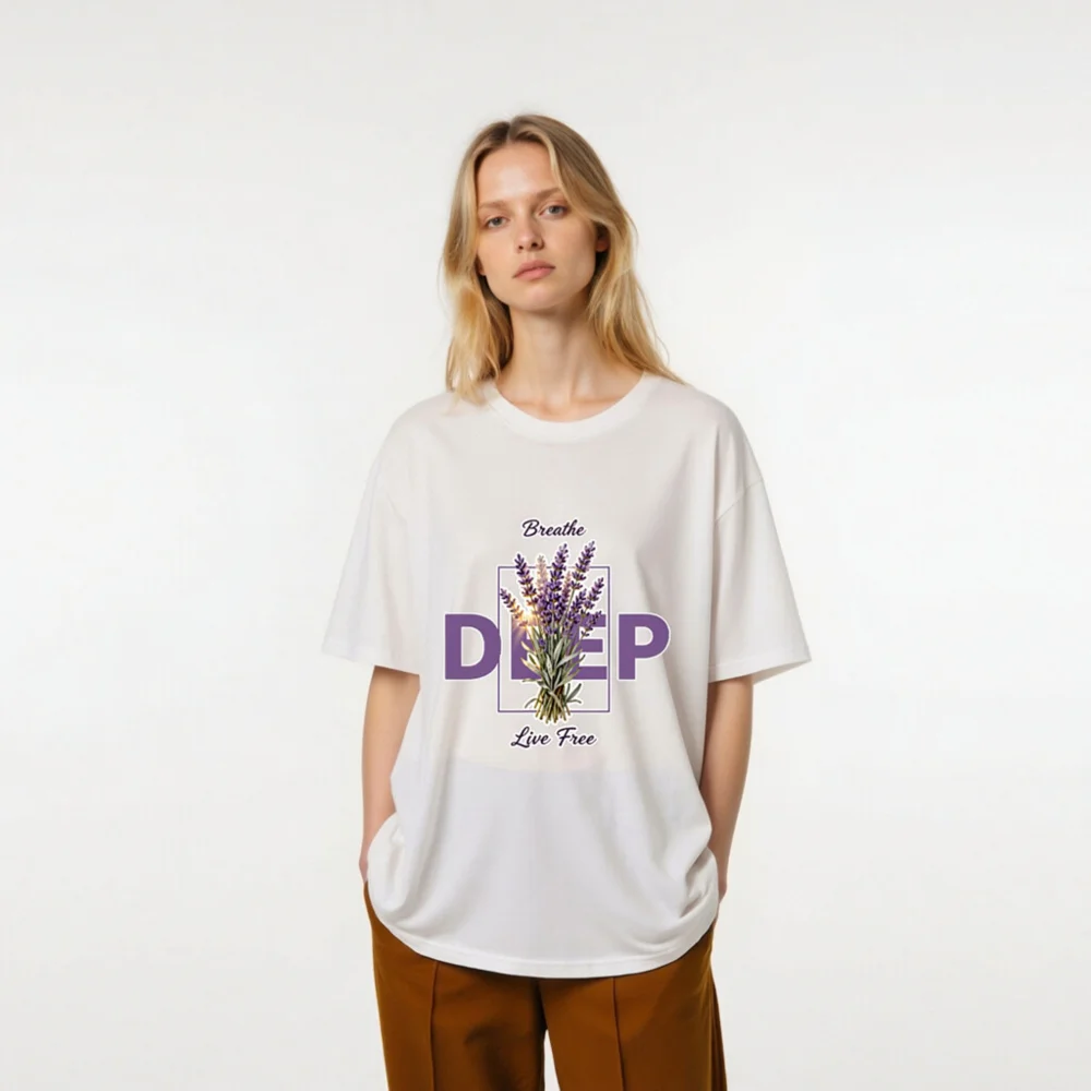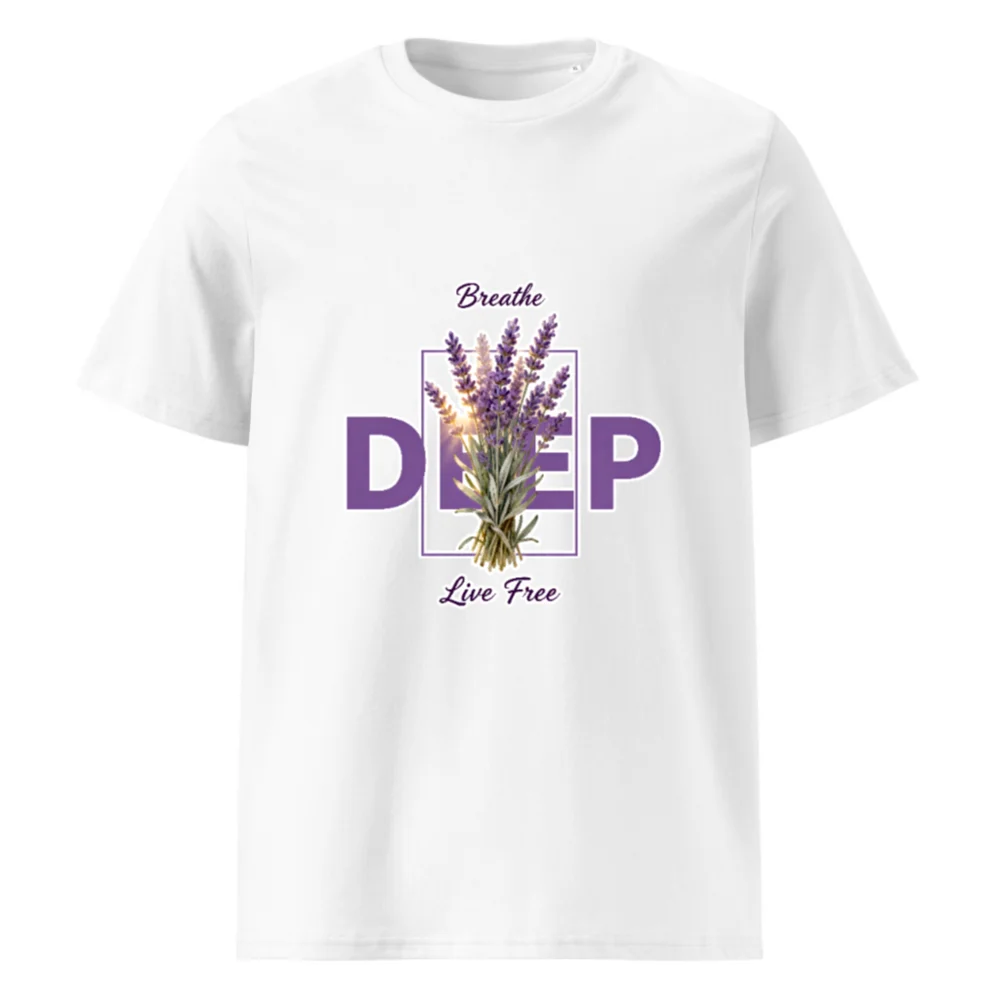 Organic Cotton Unisex T-Shirt – Breathe Deep Live Free Lavender Design
