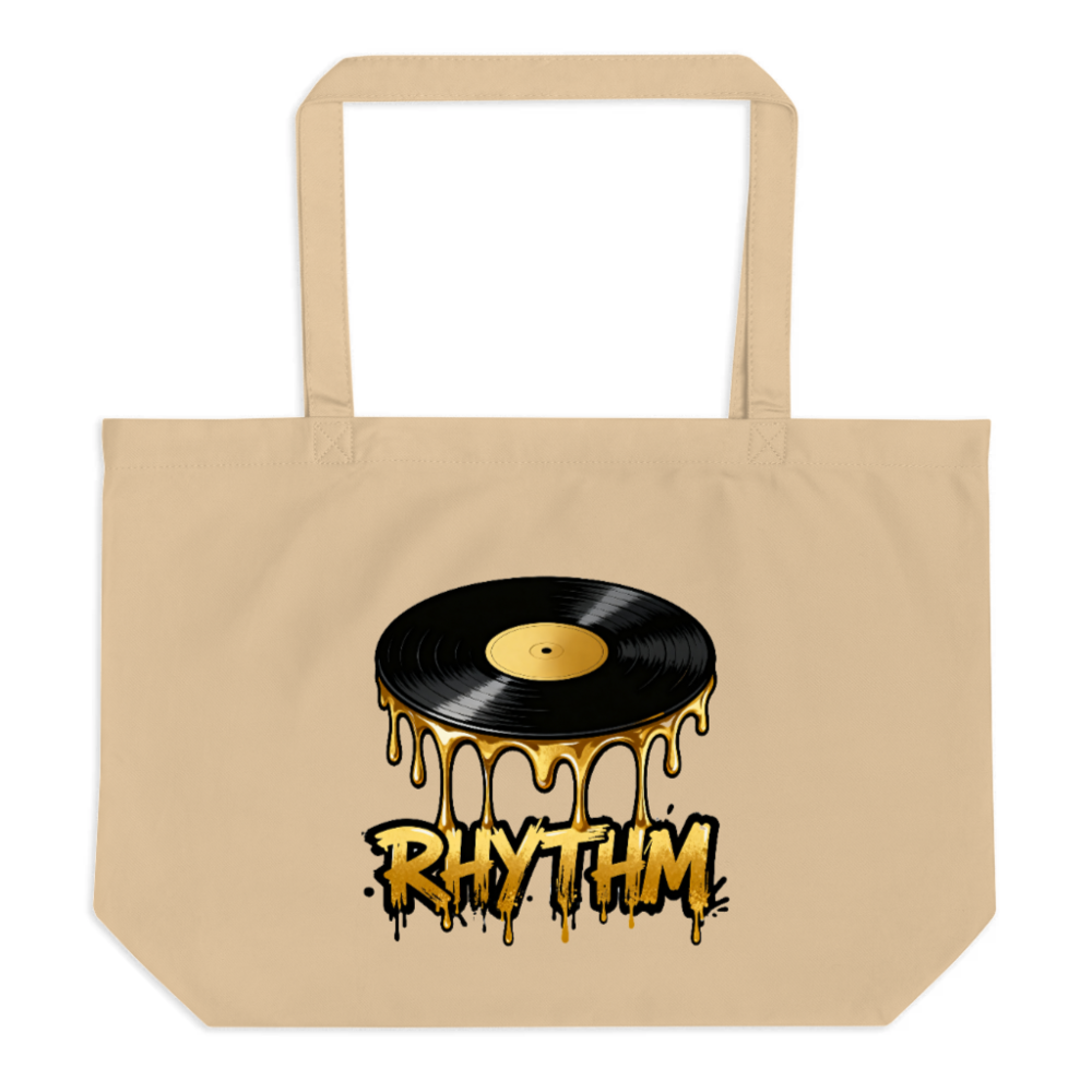 This large organic tote bag features a striking vinyl record melting into the word ‘RHYTHM’—a bold music-themed design in gold and black. Made from certified organic cotton, it’s durable, reusable, and eco-conscious. Ideal for shoppers, musicians, or music lovers seeking sustainable style. Lightweight, spacious, and machine-washable. Choose ethical fashion without compromising on impact.