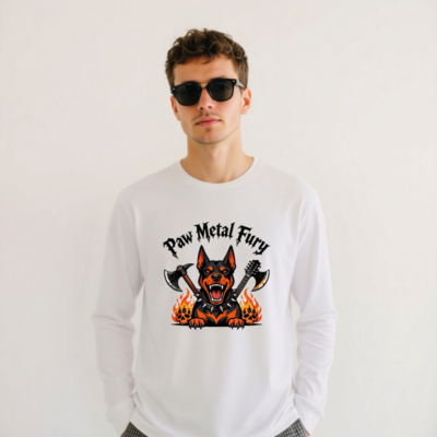 Paw Metal Fury Doberman Long Sleeve Tee – Unisex Rock Dog Shirt