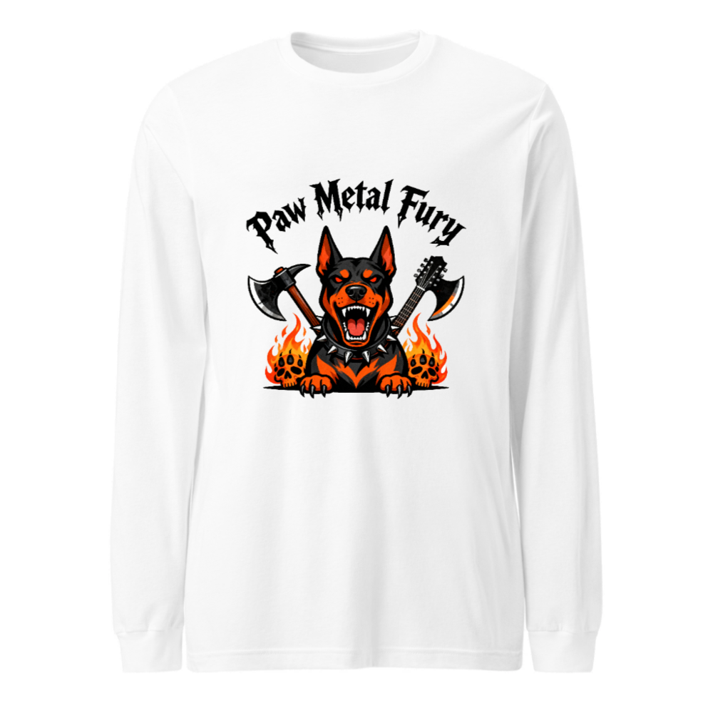 Paw Metal Fury Doberman Long Sleeve Tee – Unisex Rock Dog Shirt