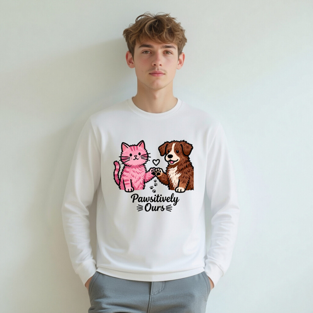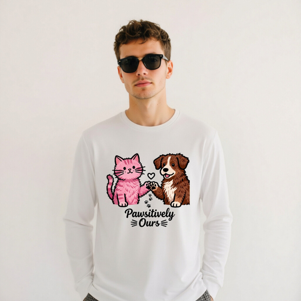 Pawsitively Ours Cat & Dog Long Sleeve Tee – Unisex, Soft Cotton