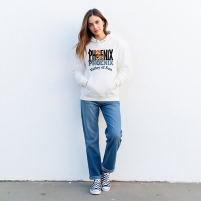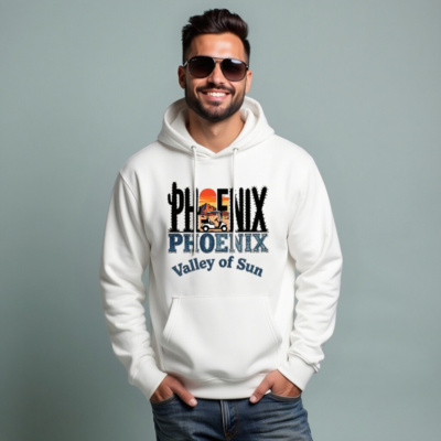 Wear the spirit of Arizona with this eco-friendly unisex hoodie featuring a vibrant ‘Phoenix’ graphic—cactus, sunset, mountain, and golf cart—celebrating the ‘Valley of Sun.’ Made from sustainable materials, it’s soft, comfortable, and perfect for casual wear or as a unique souvenir. Ideal for tourists, locals, and outdoor lovers who love desert vibes. Lightweight, versatile, and proudly printed with zero-waste values.