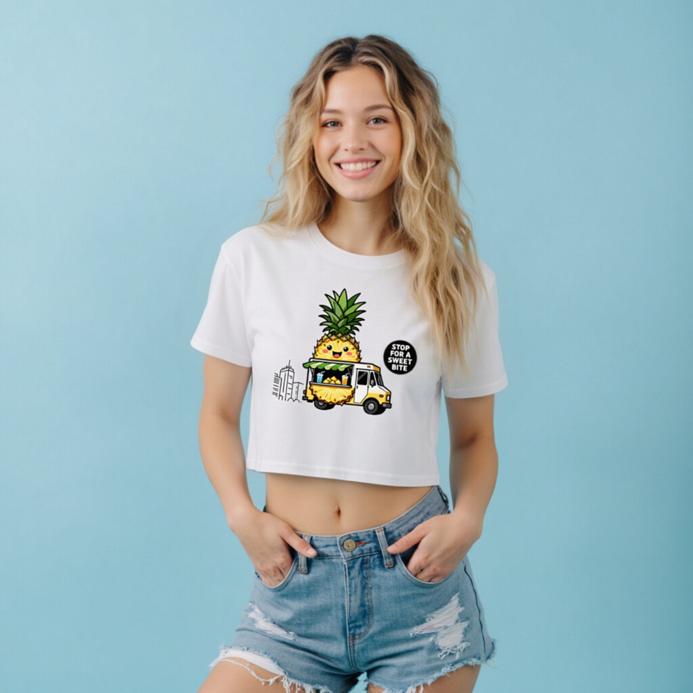 Pineapple Food Truck Women’s Crop Top – Stop for a Sweet Bite